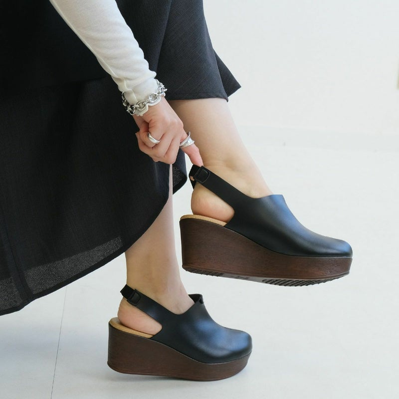 6.5cmのウェッジソールで美脚魅せ!アッパーが柔らかく、裏地にやわらかな起毛した生地を使用しているから、足にやさしくフィットします。