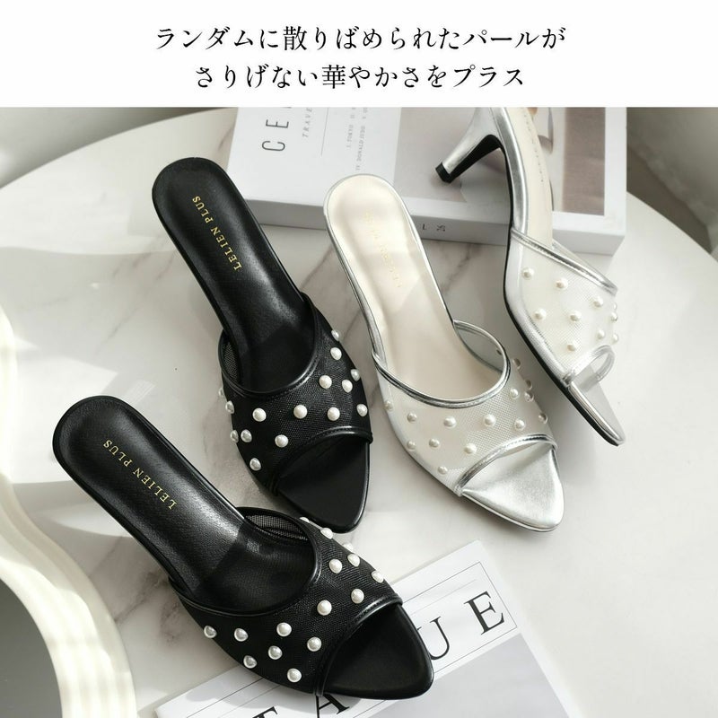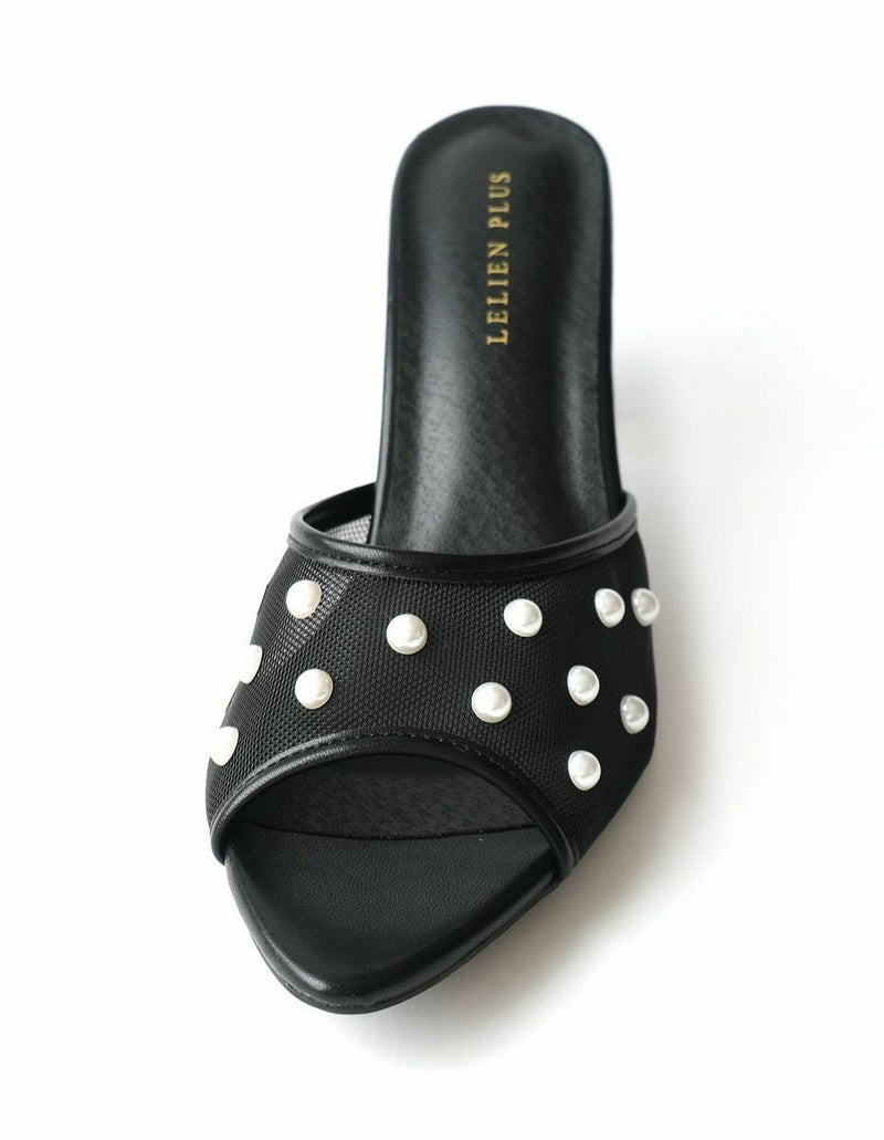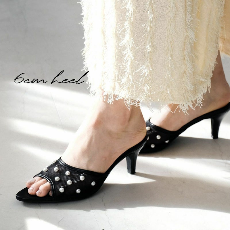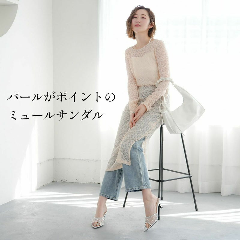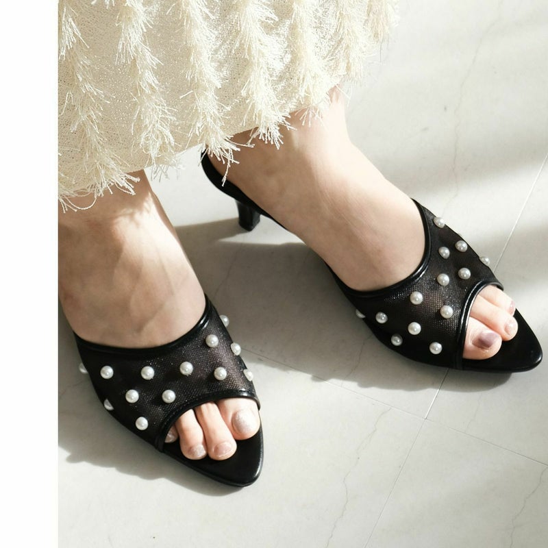 ランダムに散りばめられた上品パールが華やかなミュールサンダル
