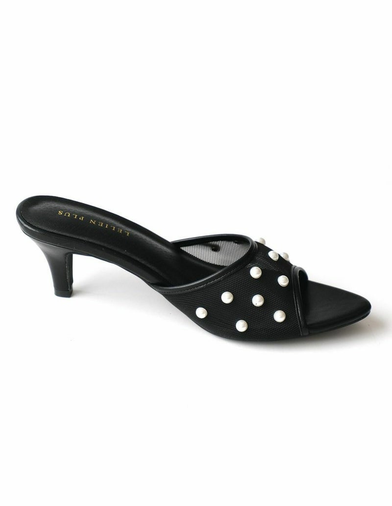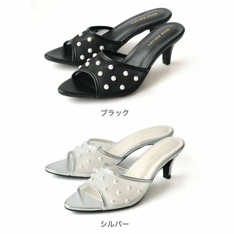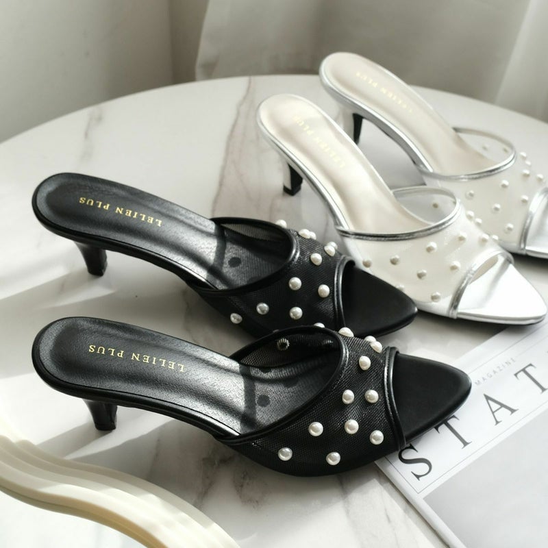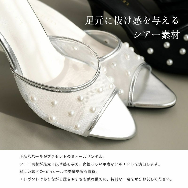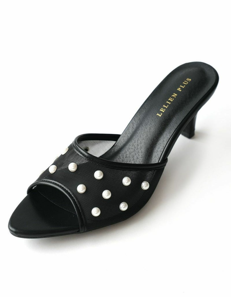 ランダムに散りばめられた上品パールが華やかなミュールサンダル