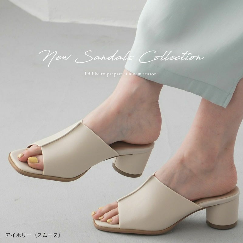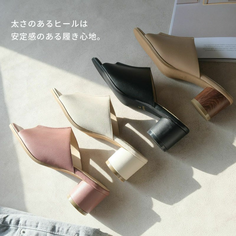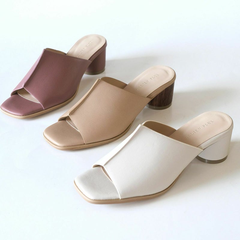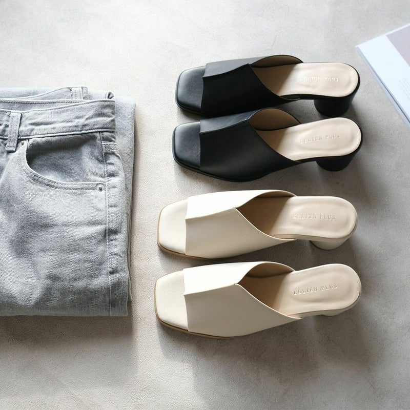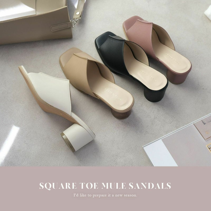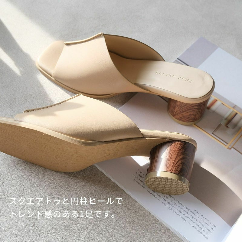 スクエアトゥと円柱ヒールでトレンド感のあるミュール