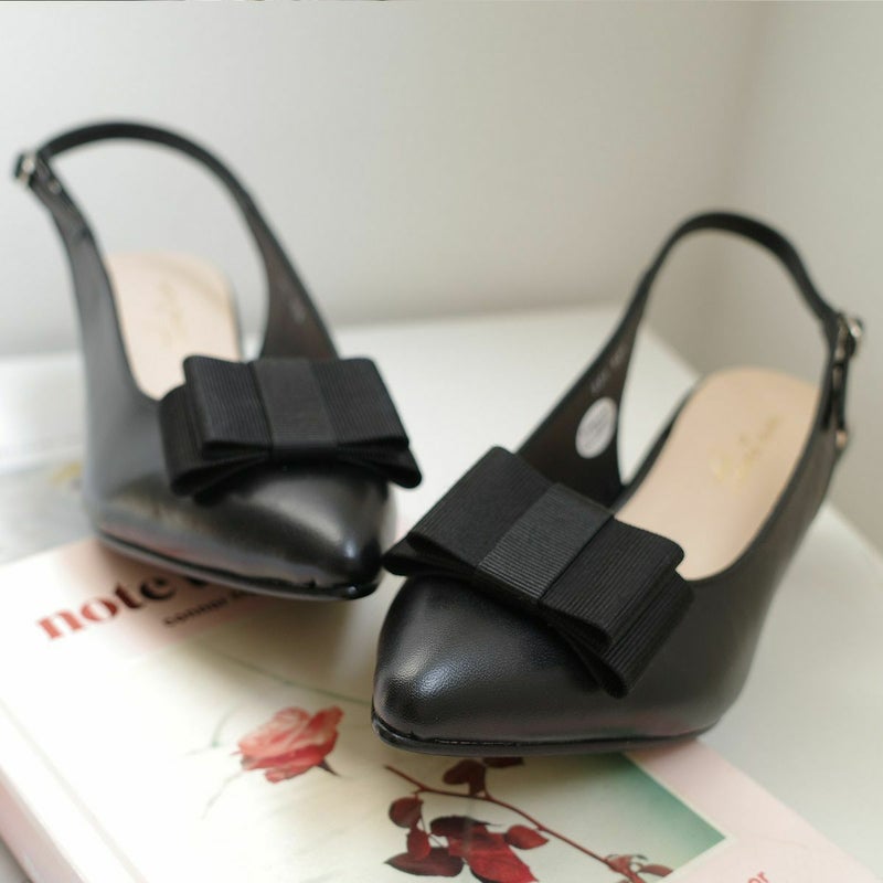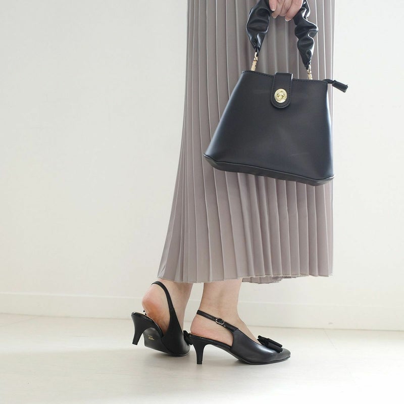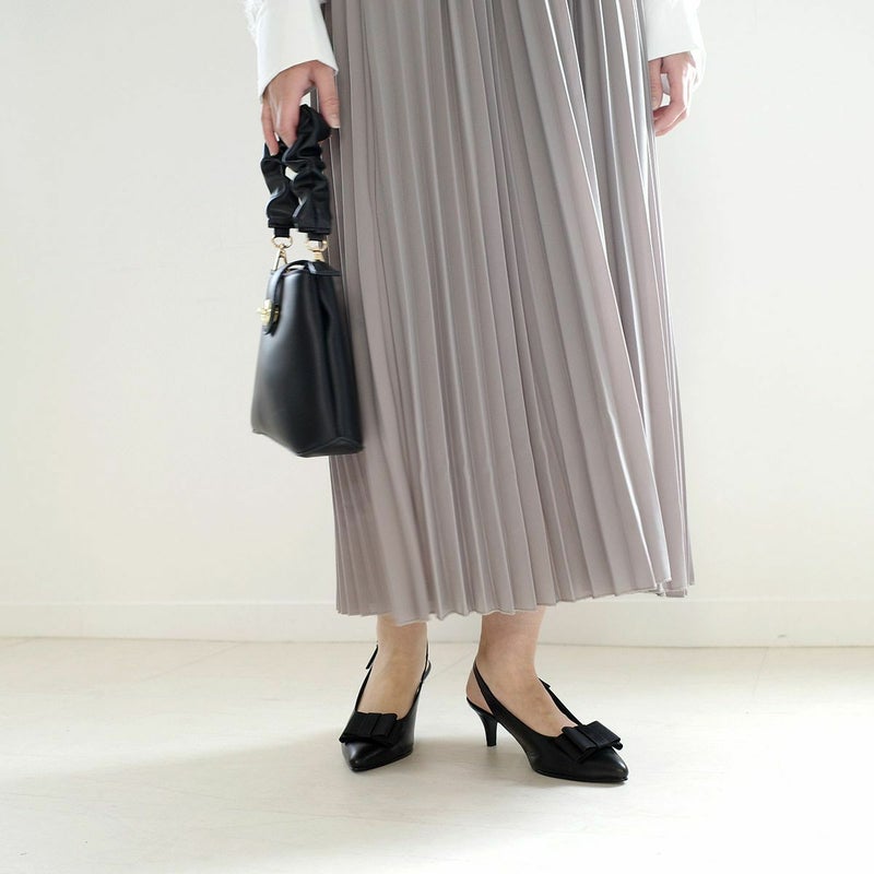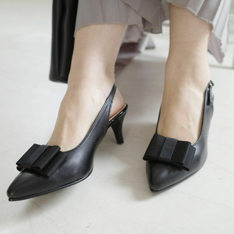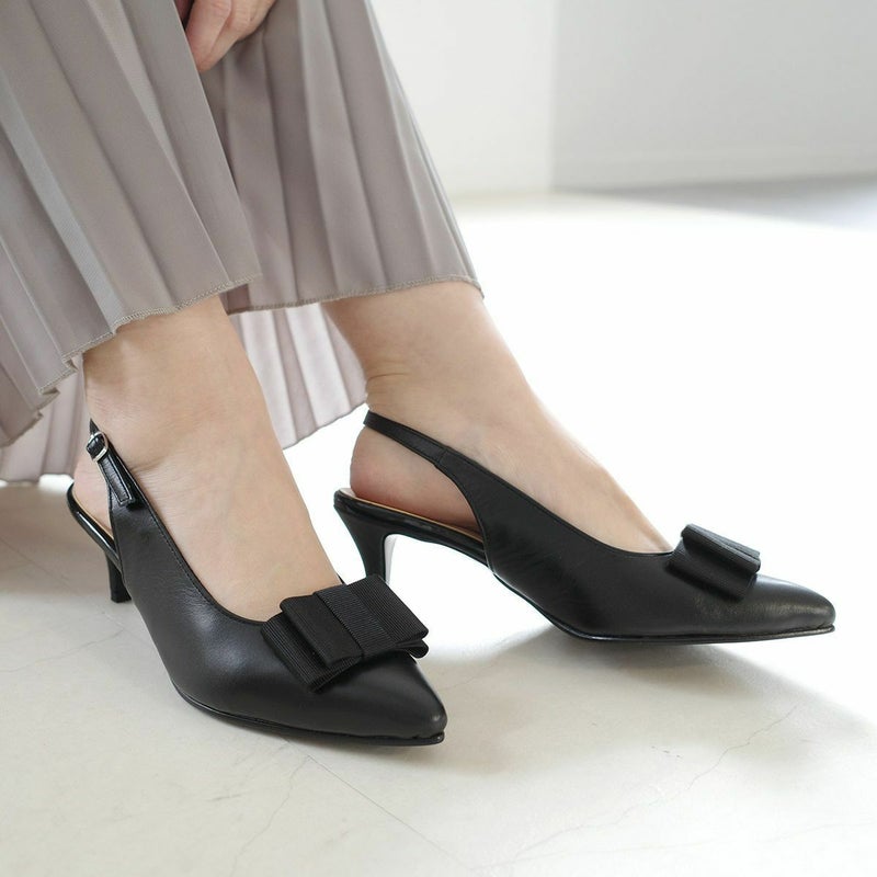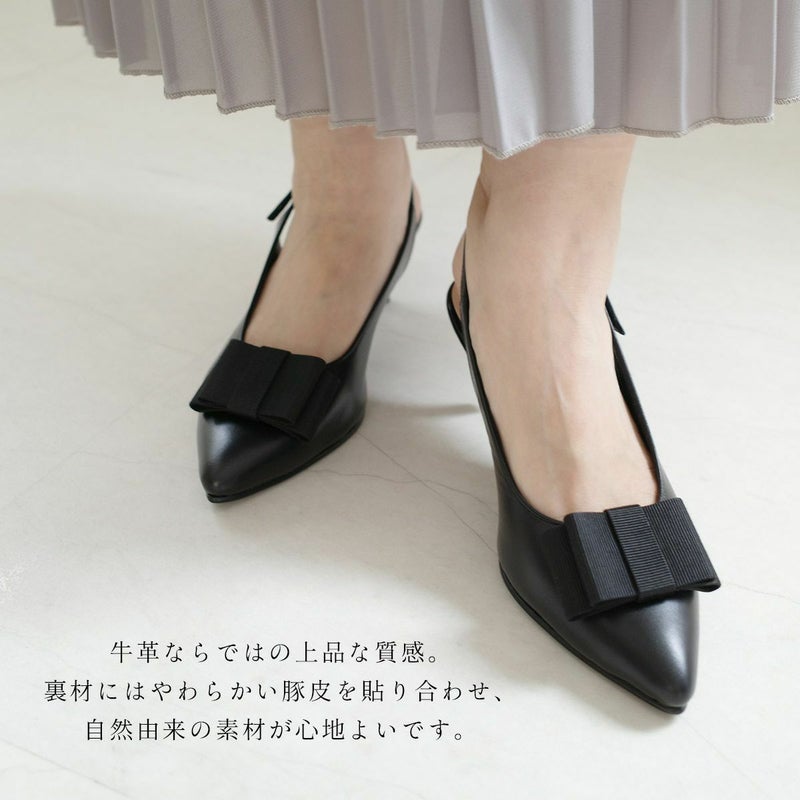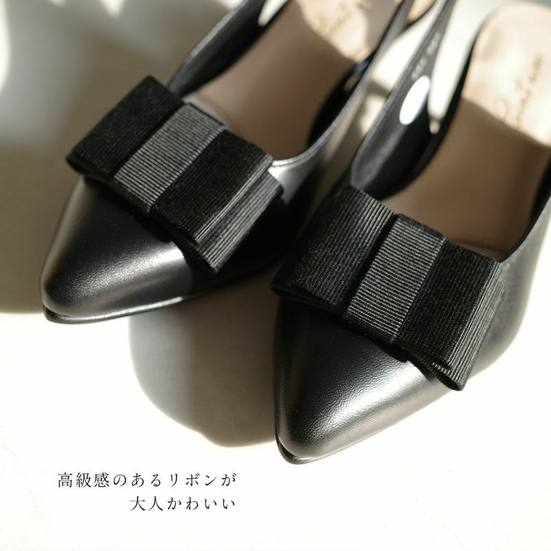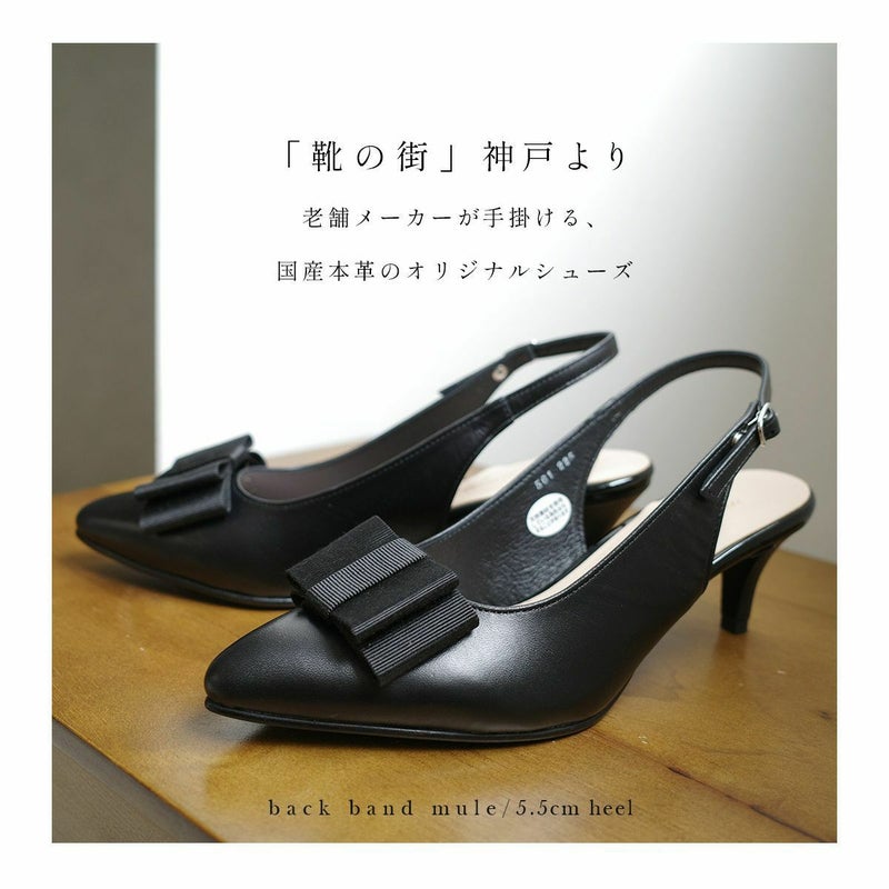 リボン付きエレガントバックバンドミュール日本製本革 レディース