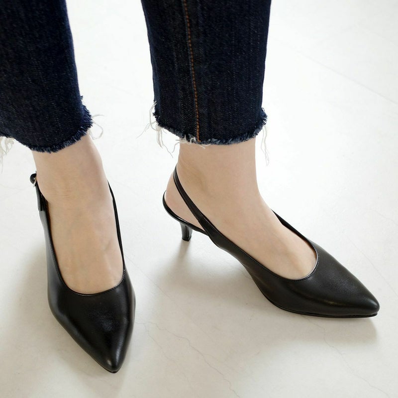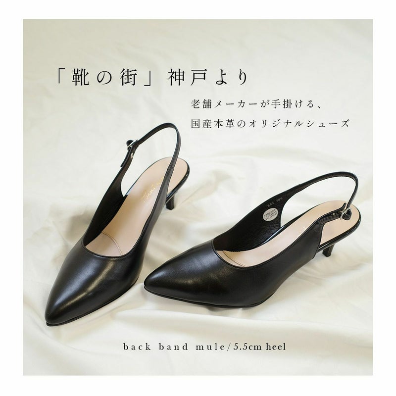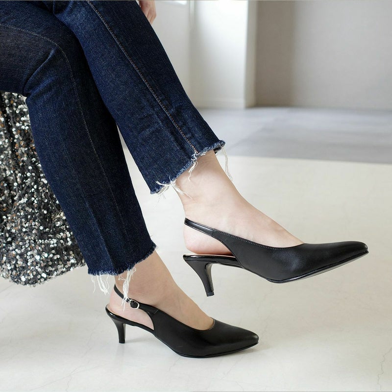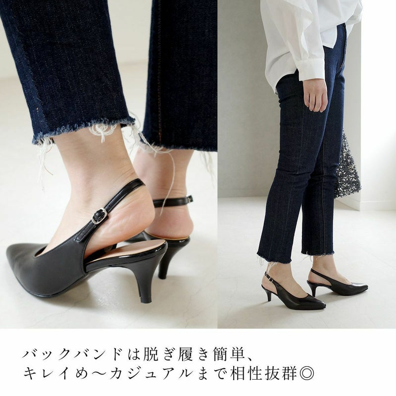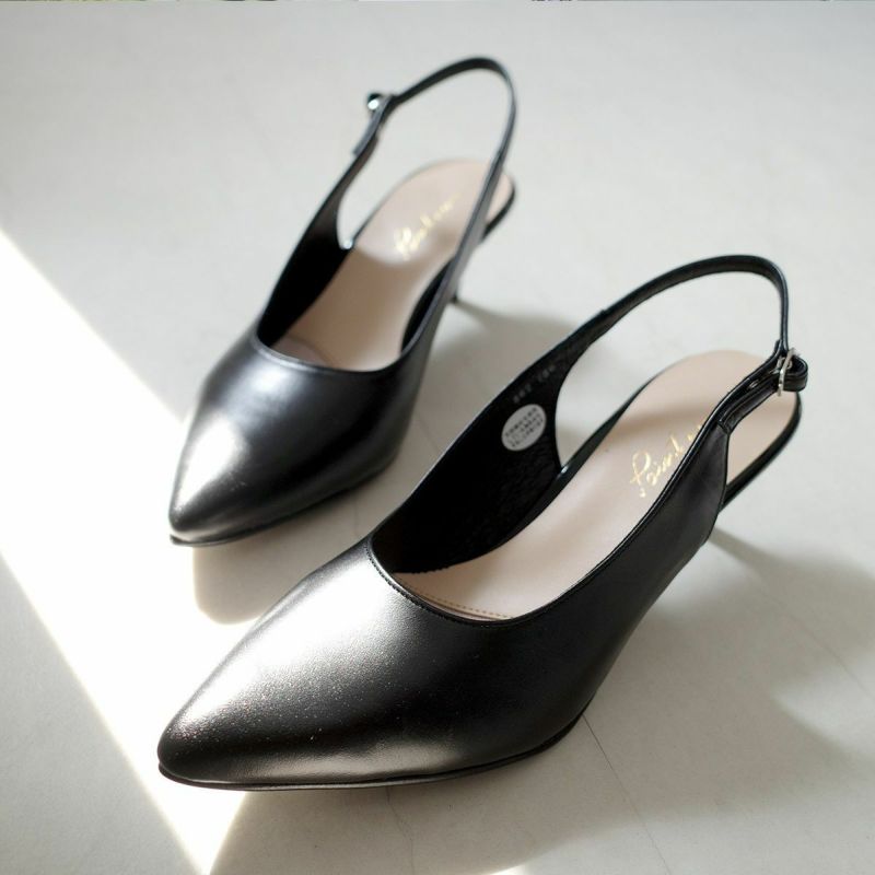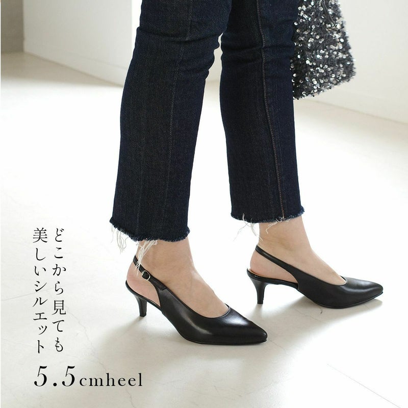 シンプルなバックバンド、約5.5cmのヒールは美脚効果抜群。