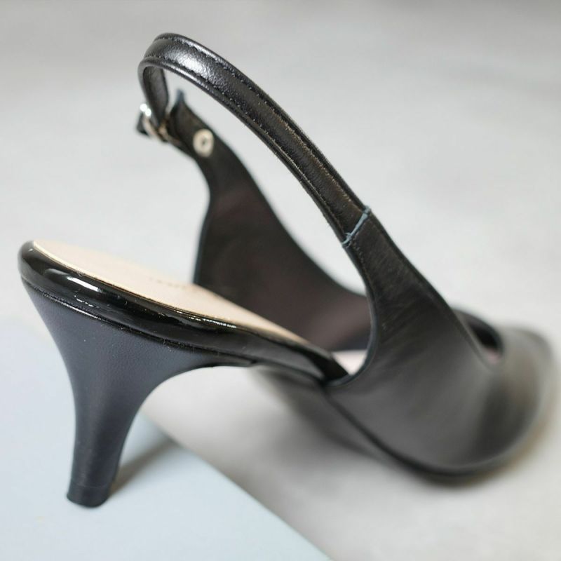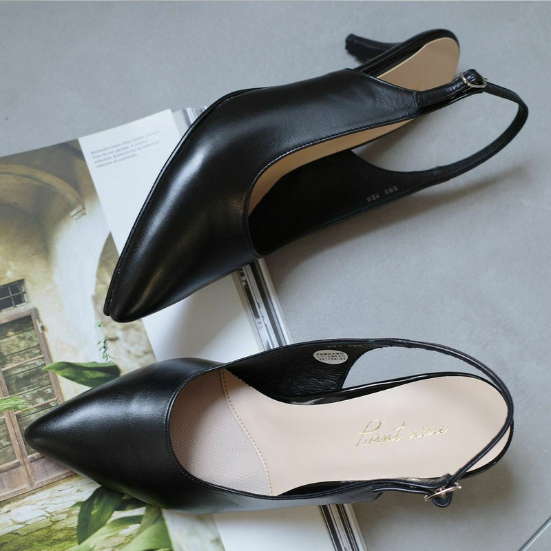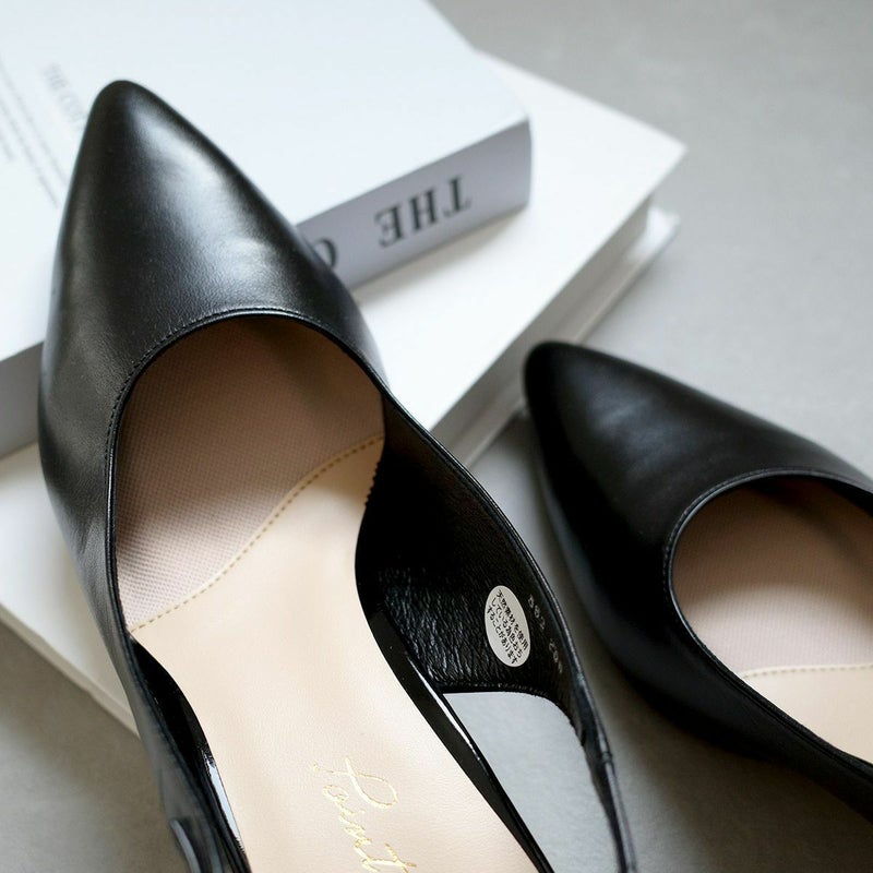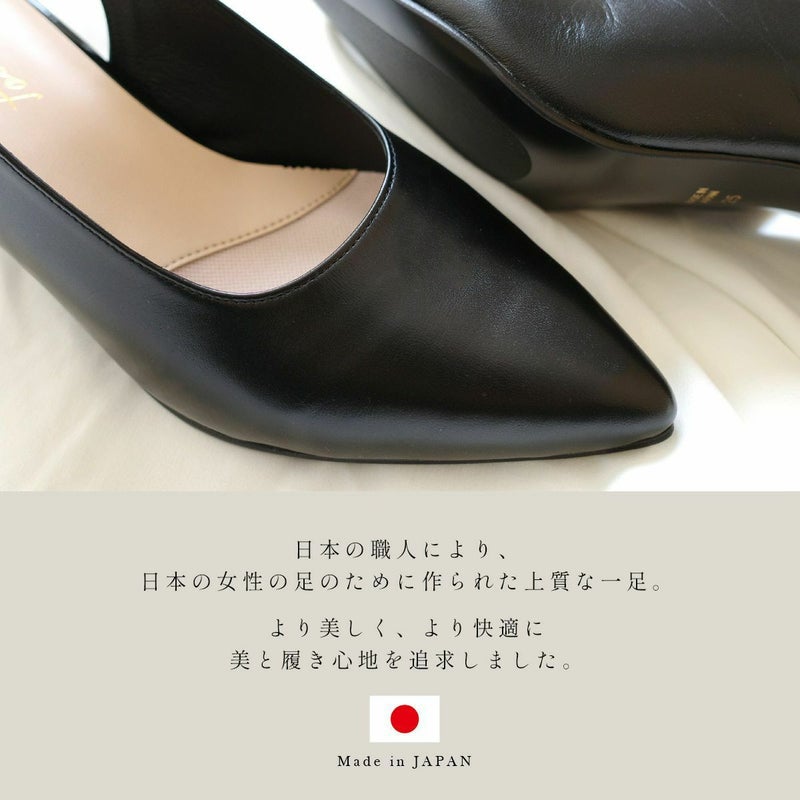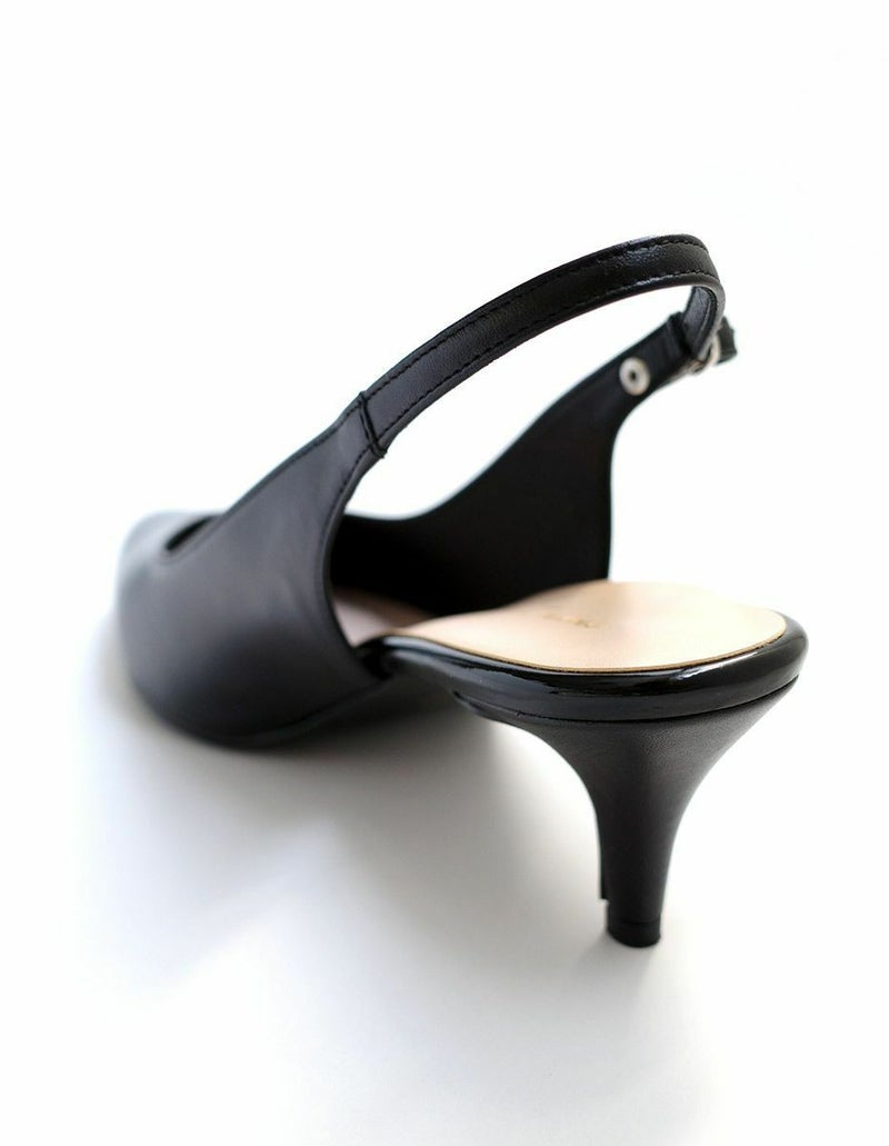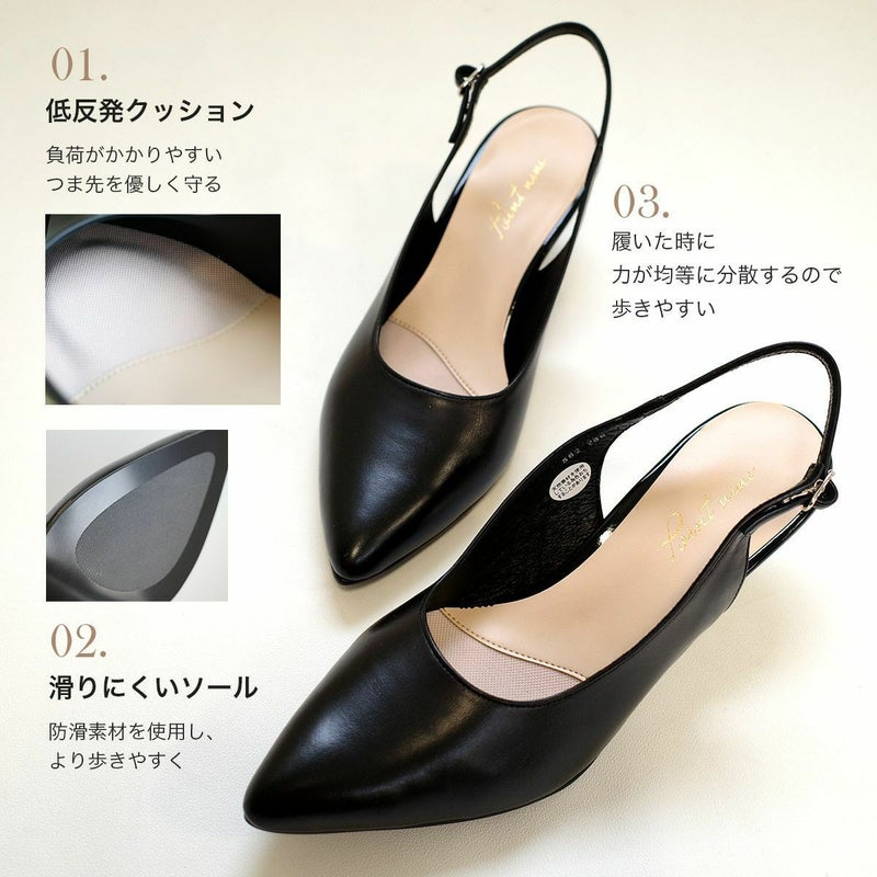 シンプルなバックバンド、約5.5cmのヒールは美脚効果抜群。