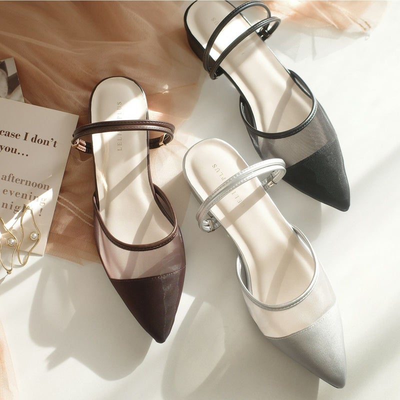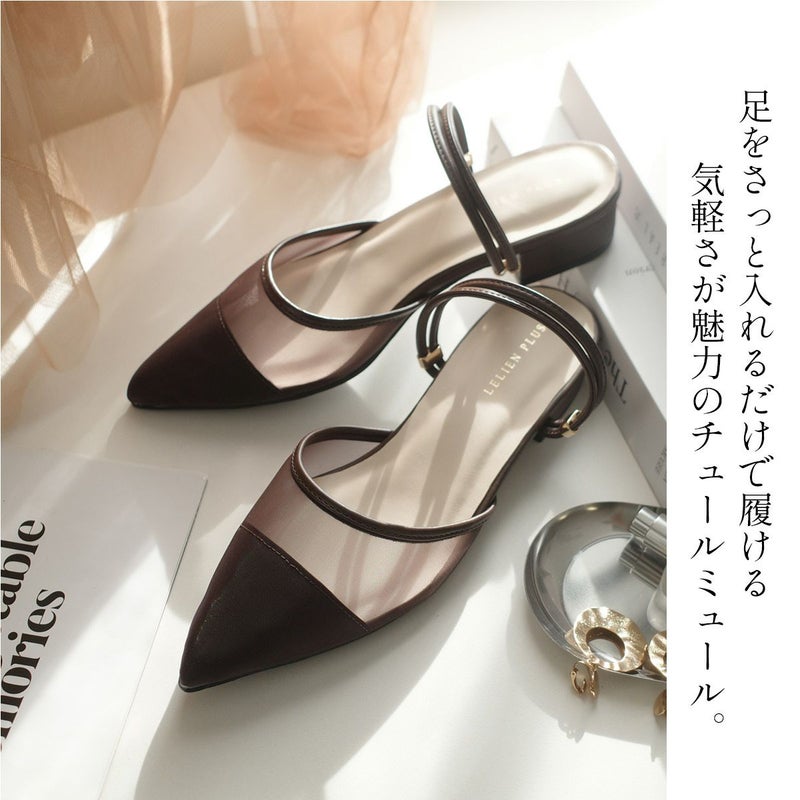 足をさっと入れるだけで履ける気軽さが魅力のチュールミュール
