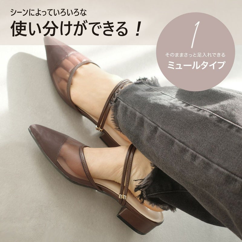 パンプスのきちんと感と、サンダルの抜け感をあわせ持つミュールデザインで、シーンを選ばず活躍。!