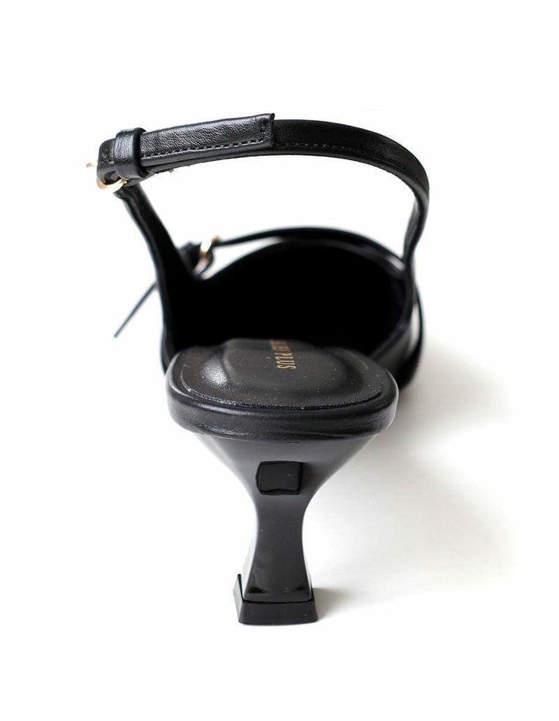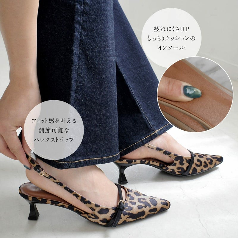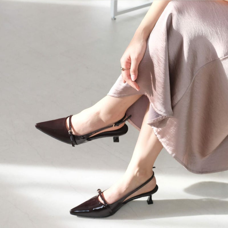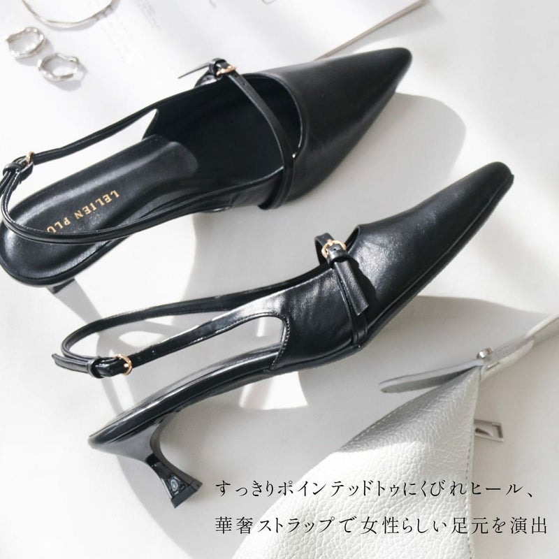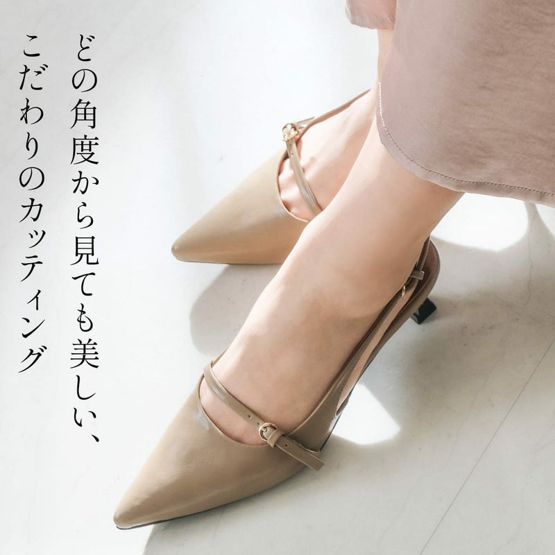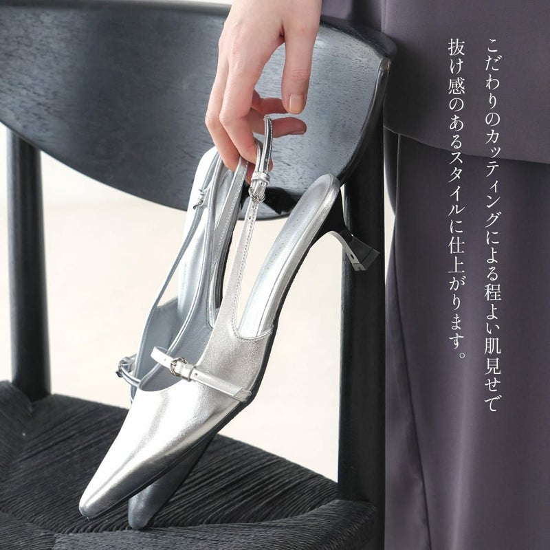 こだわりのカッティングによる程よい肌見せで抜け感のあるスタイルに仕上がります。すっきりポインテッドトゥにくびれヒール、華奢ストラップで女性らしい足元を演出してくれます。