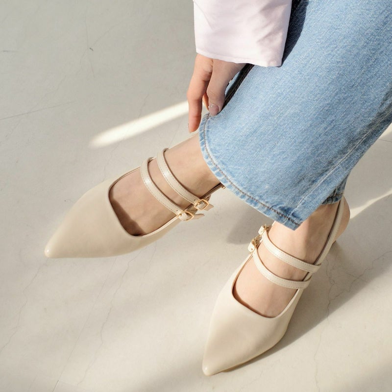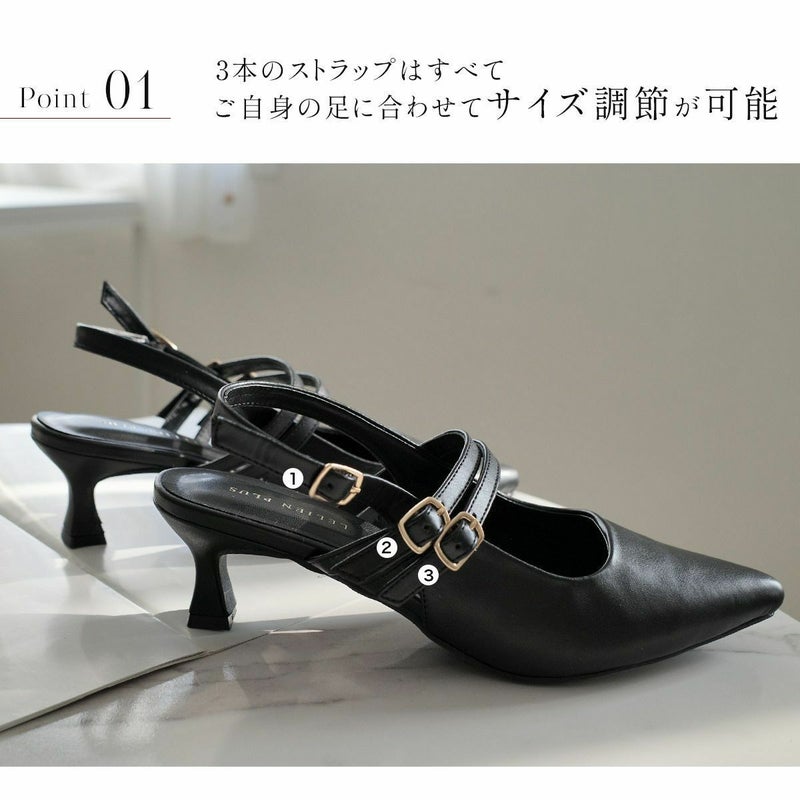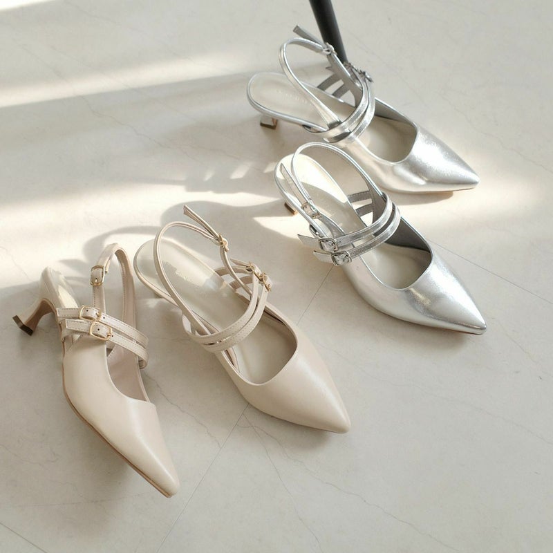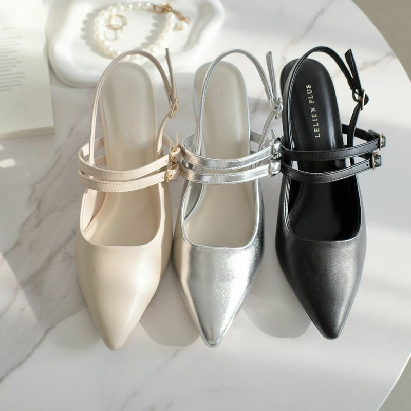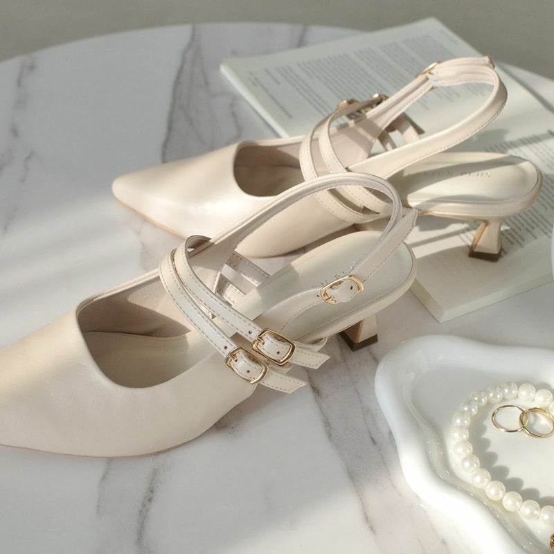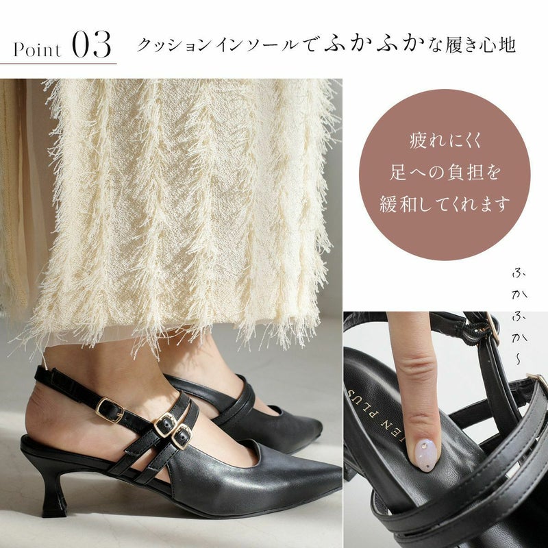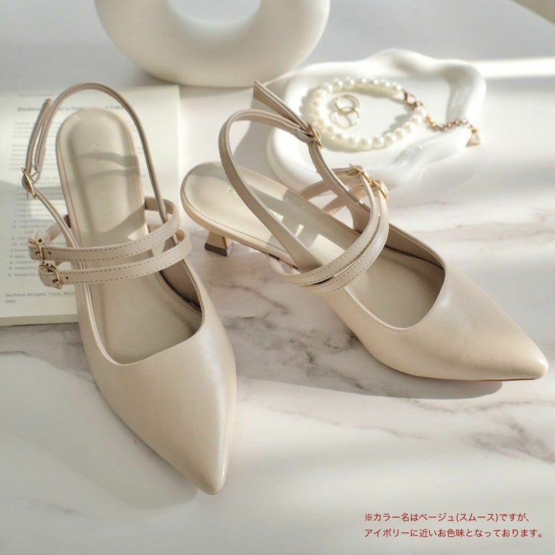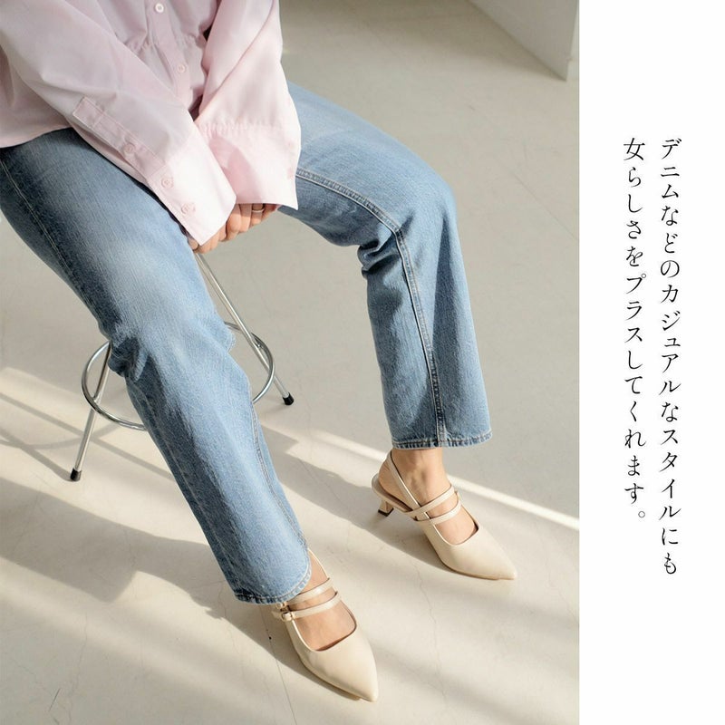 女性らしい華奢な足元を演出してくれるバックストラップミュール