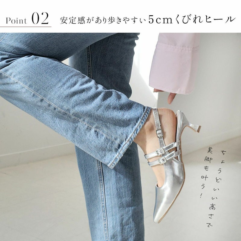 安定感と美脚の両方が叶う5cmくびれヒールで歩きやすく、カジュアルなスタイルにも女らしさを加えてくれます。