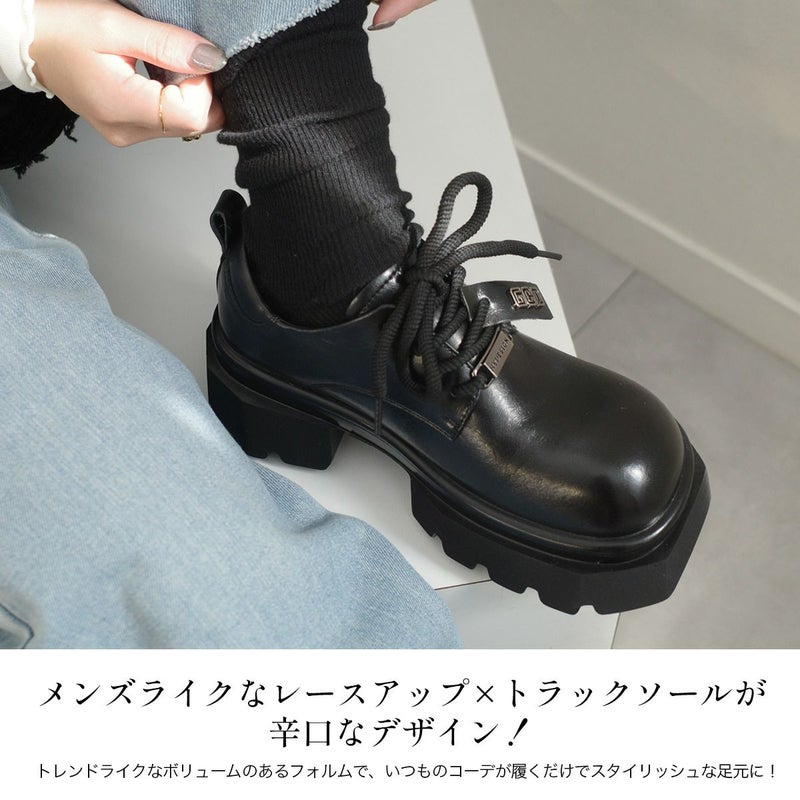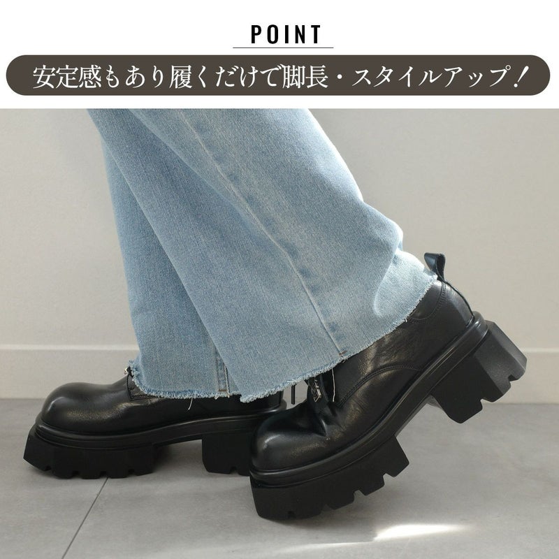 ボリューム感たっぷりな厚底ソールで安定感があり、歩きやすい!美脚脚長やスタイルアップが期待できる。