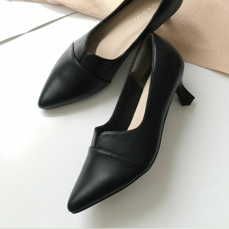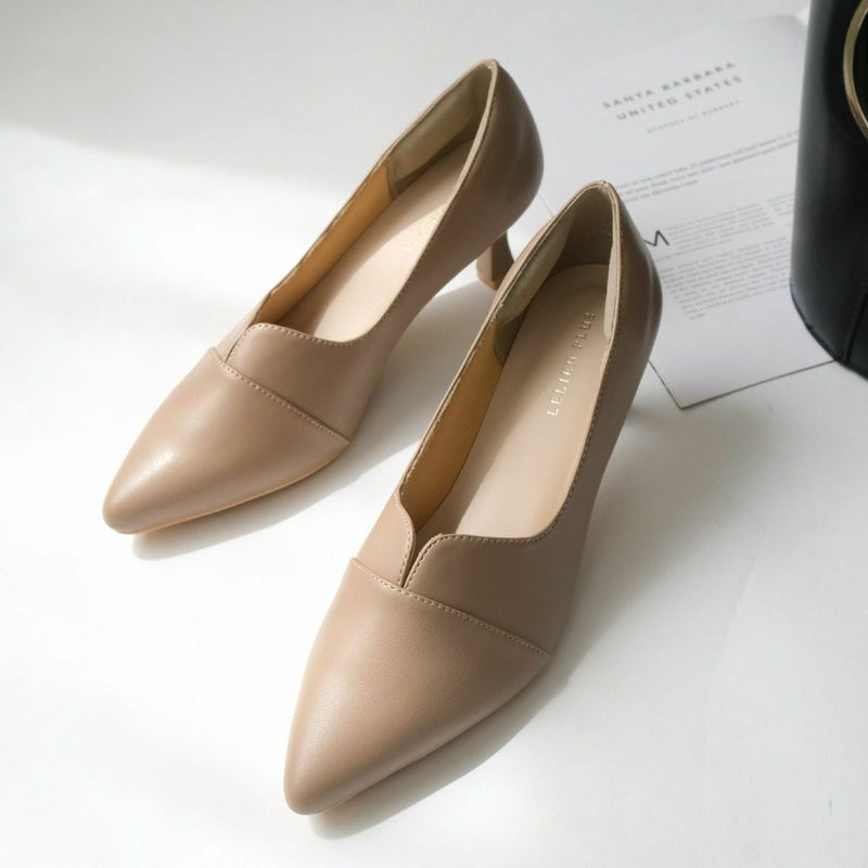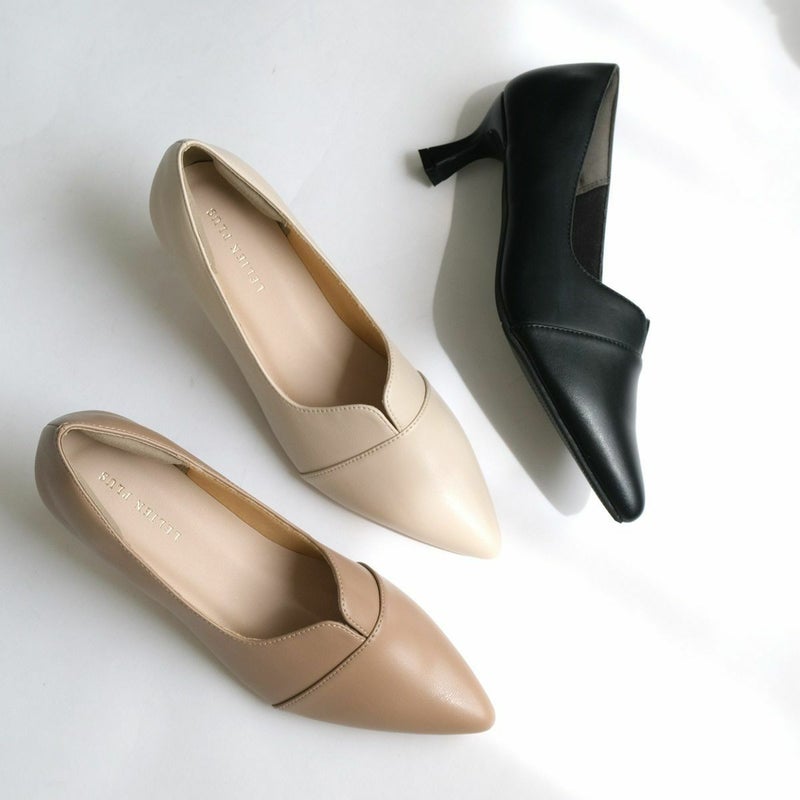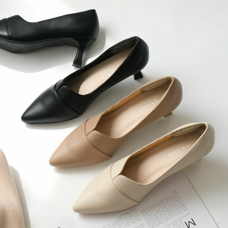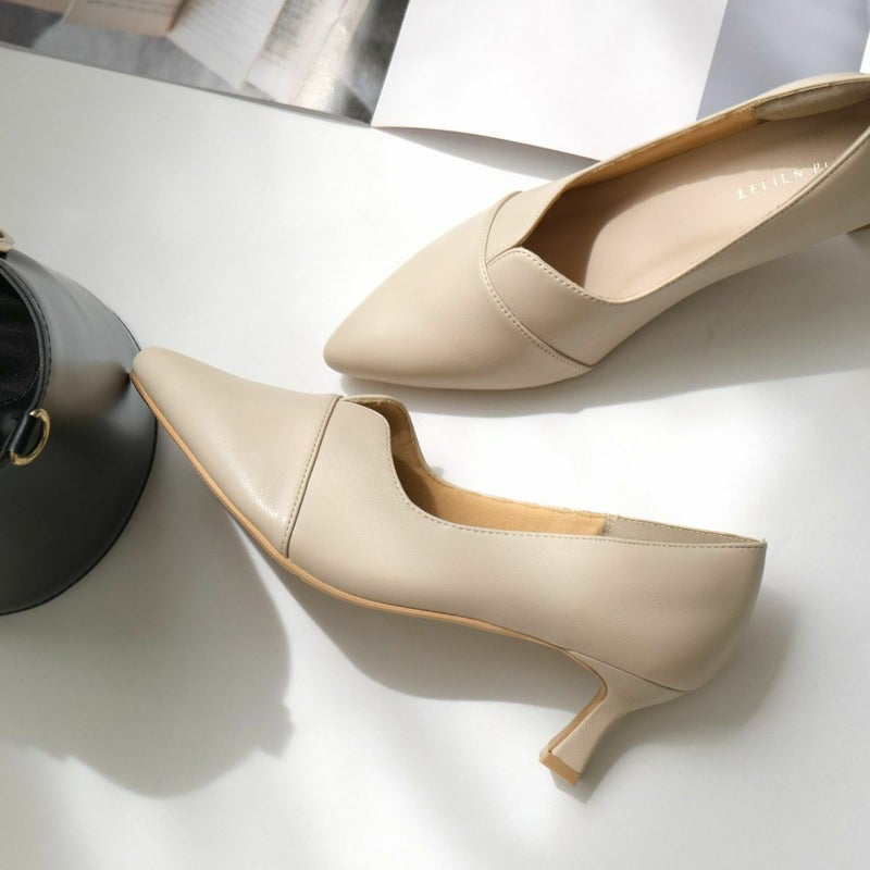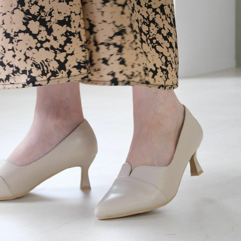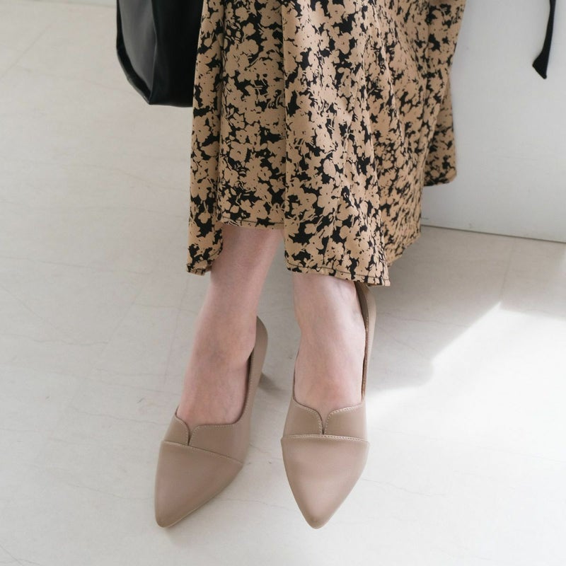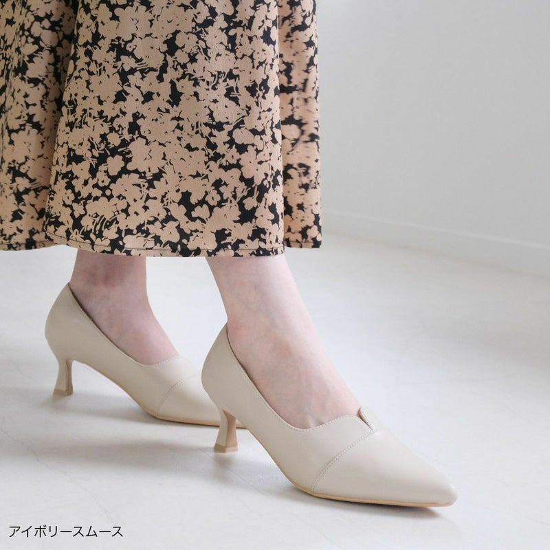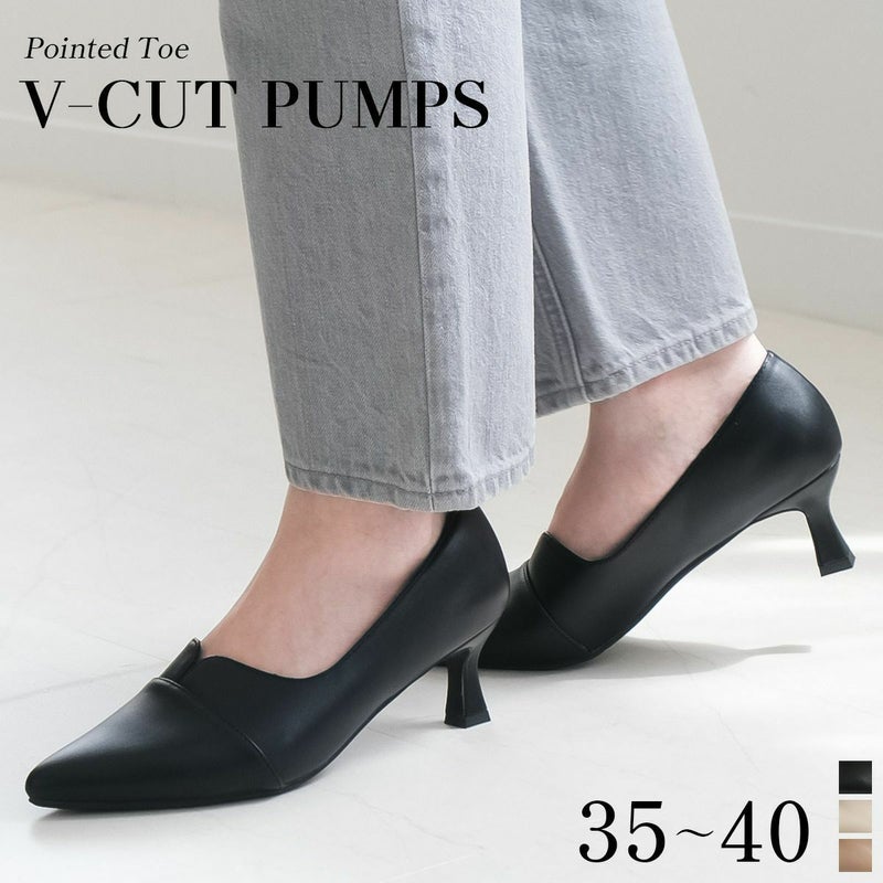 上品に仕上がったV字のスリットポインテッドトゥパンプス