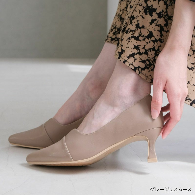 フィット感を高めるかかとクッション付き。くびれのあるヒールが女性らしいシルエットを叶え、後ろ姿まで美しくまとまります。