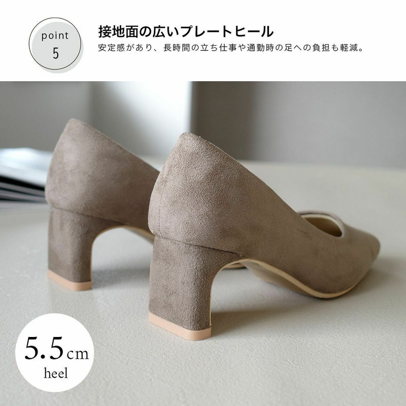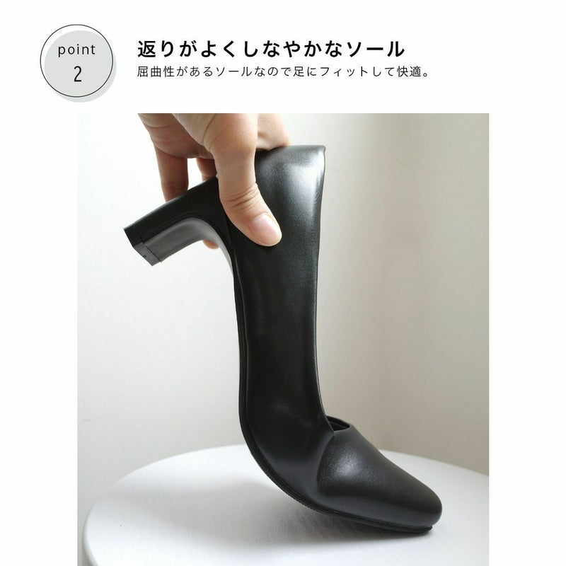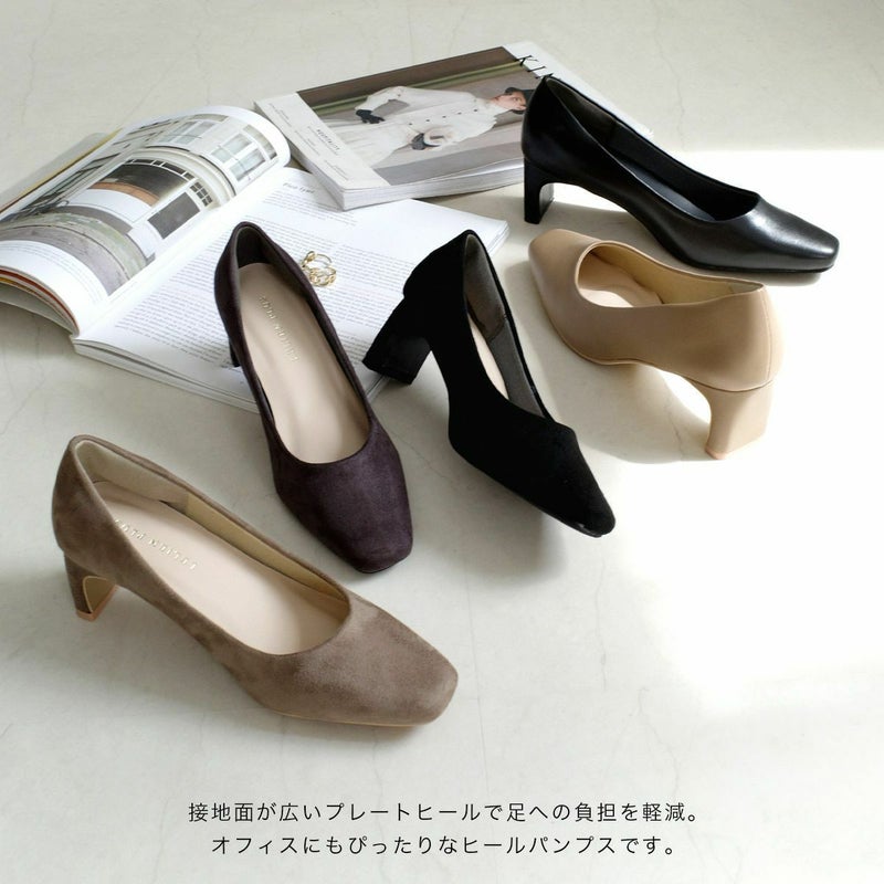 安定感がありオフィスにもぴったりなパンプス。低反発インソール&かかとクッションで快適な履き心地。