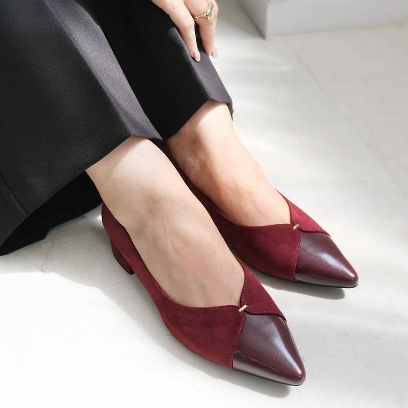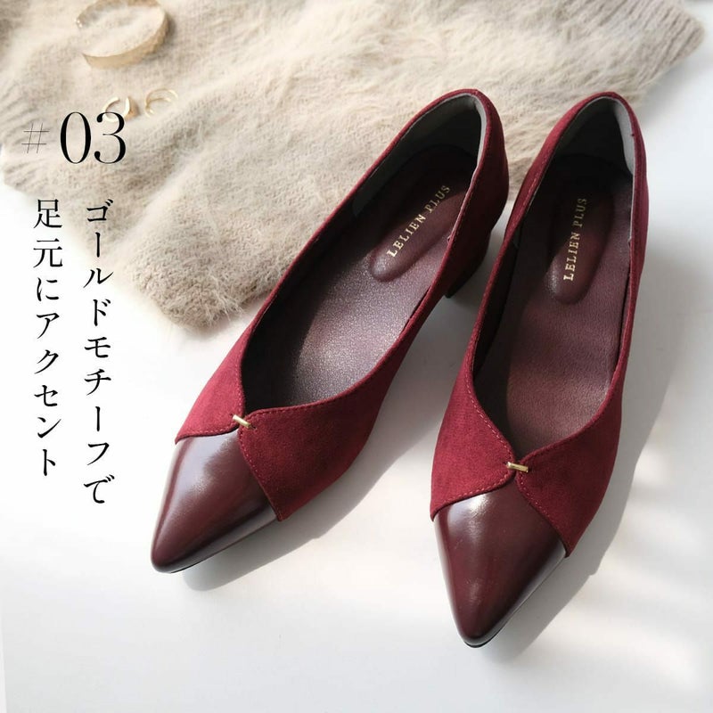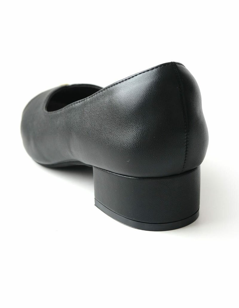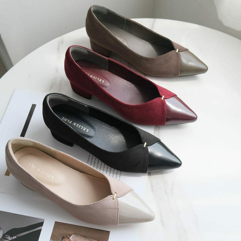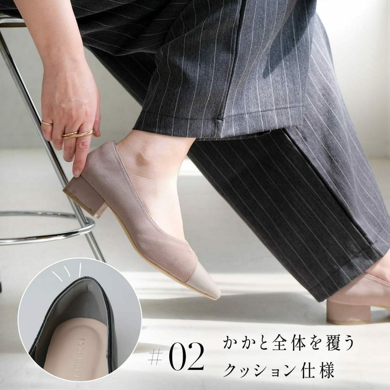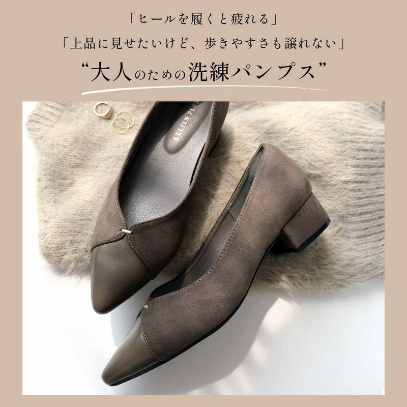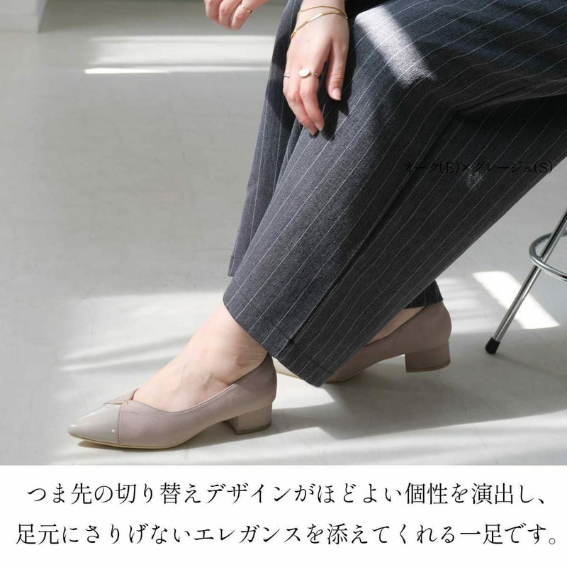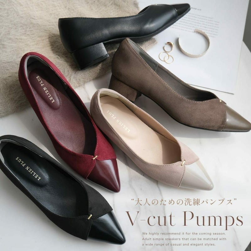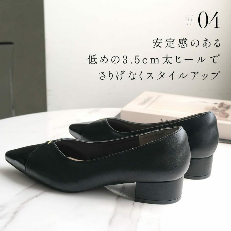 3.5cmの安定感ある太ヒールでさりげなくスタイルアップ!歩きやすさと美しさ、どちらも叶えるVカットデザインの大人パンプス