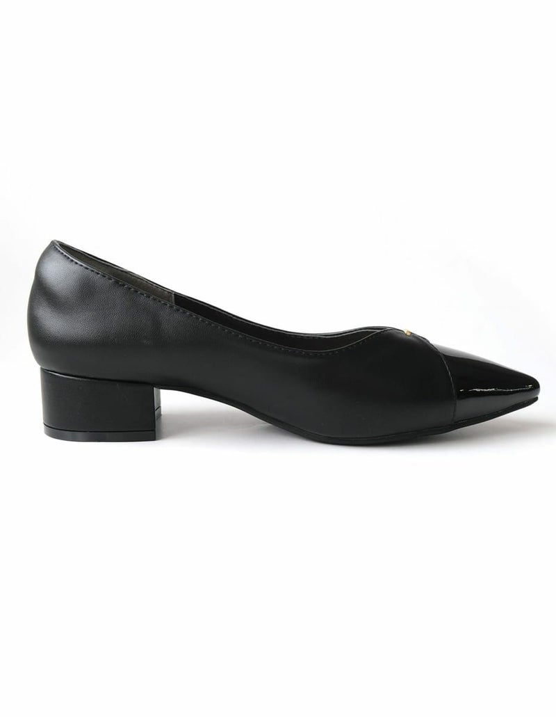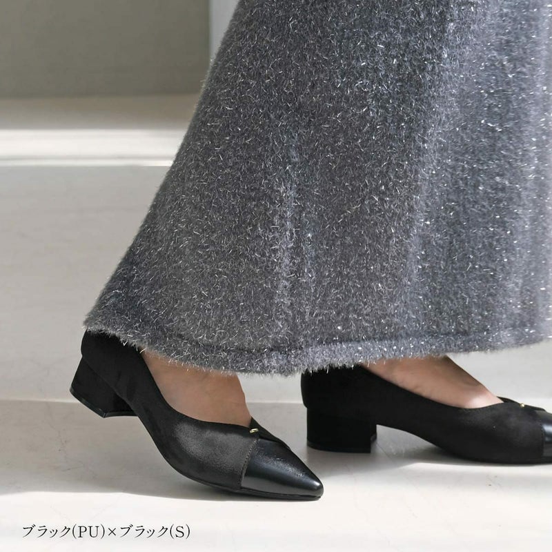 つま先の切り替えデザインがポイントの、エレガントなパンプス