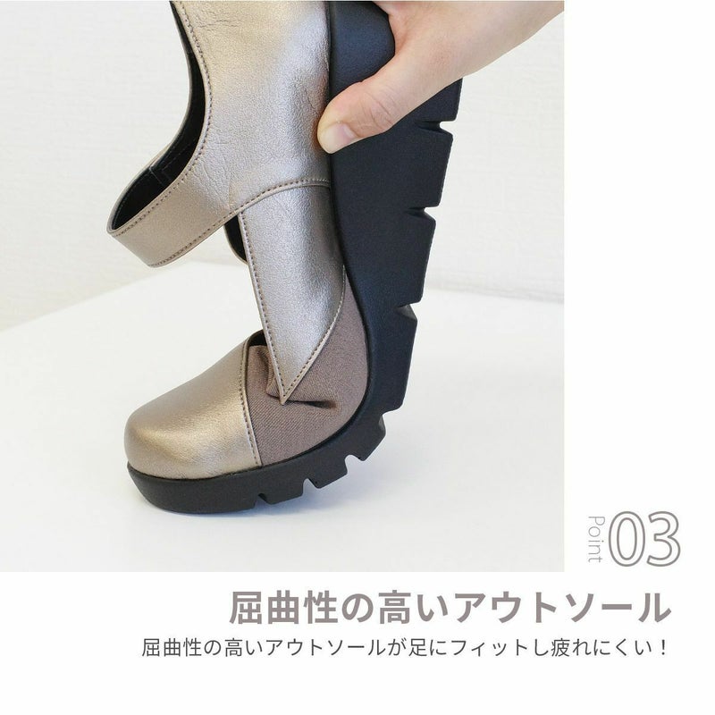 屈曲性の高いアウトソールは足にフィットし疲れにくく、美脚効果も抜群。
