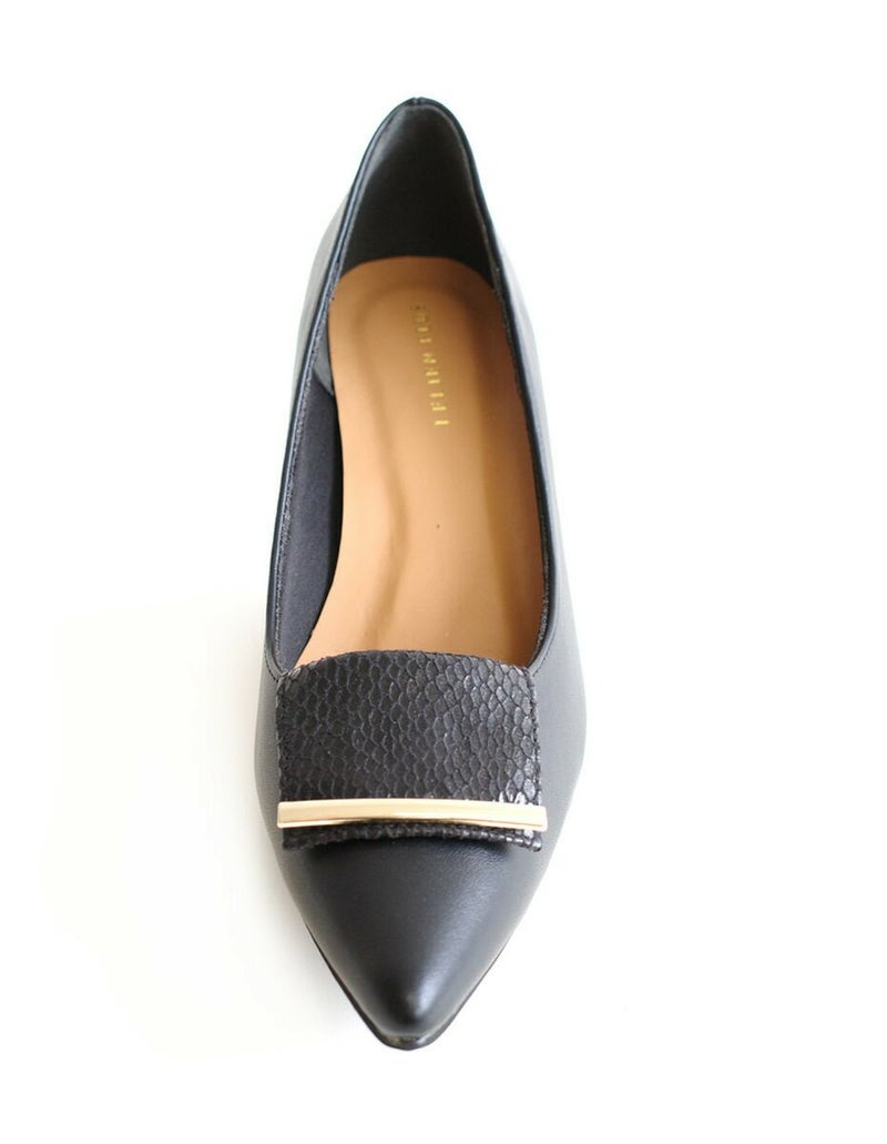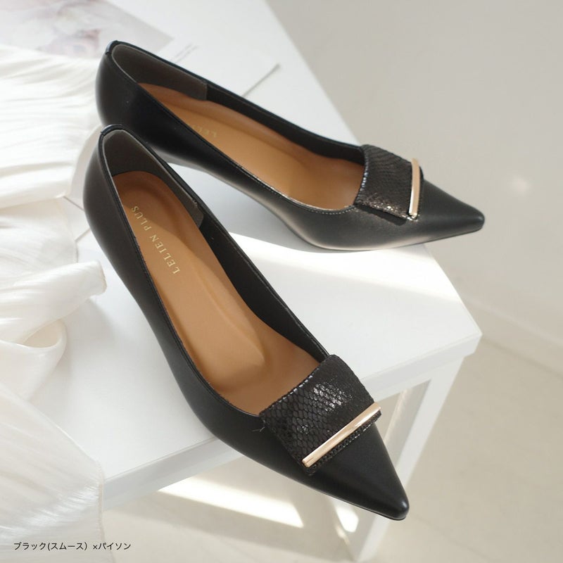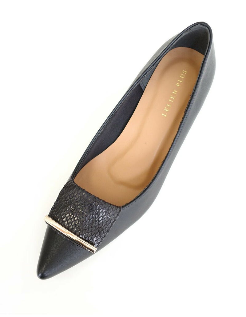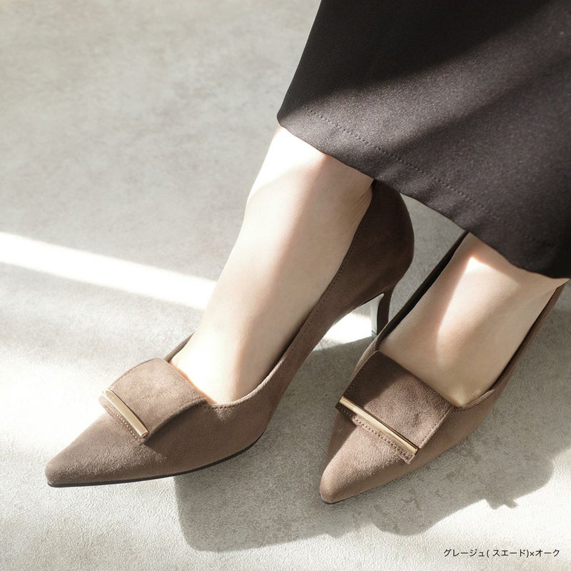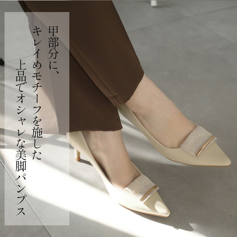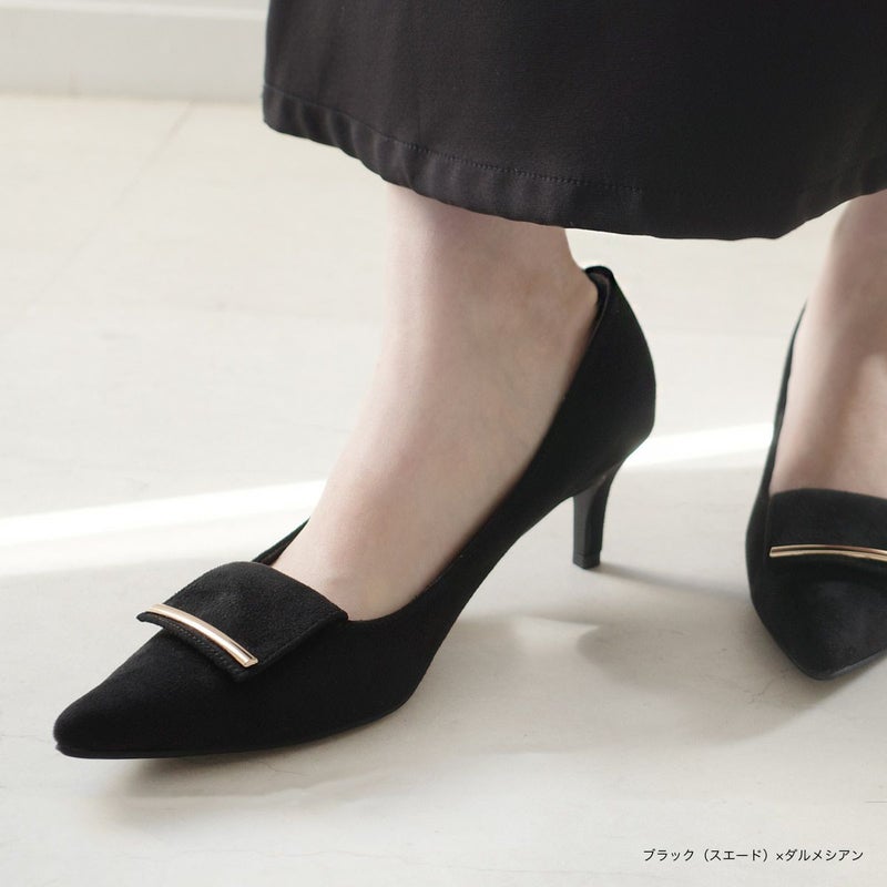 甲に、キレイ目モチーフを施した上品ポインテッドトゥパンプス