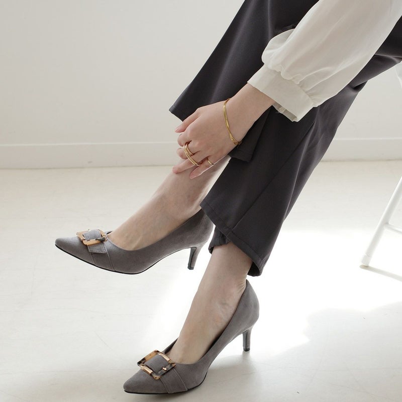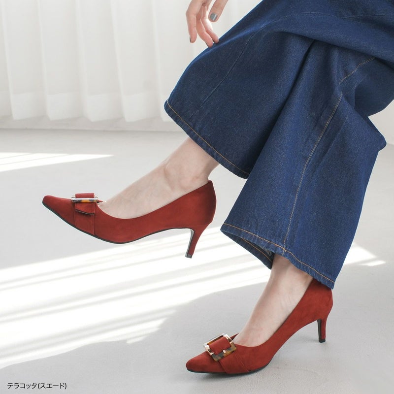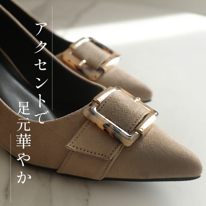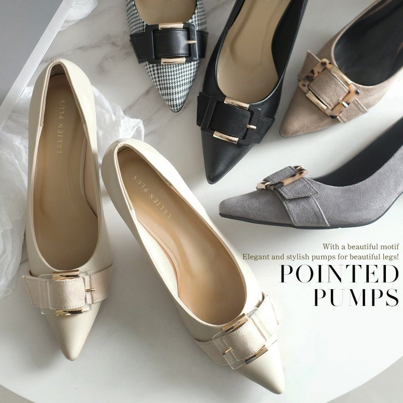 甲に、キレイ目モチーフを施した上品でオシャレな美脚パンプス!