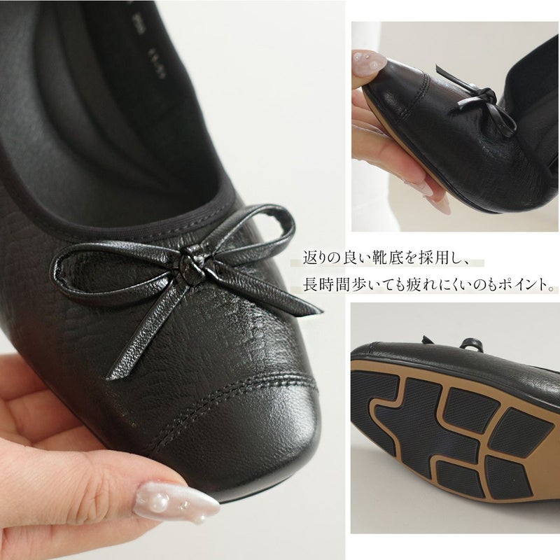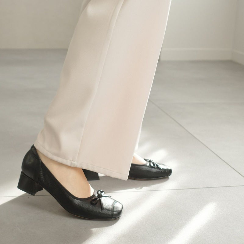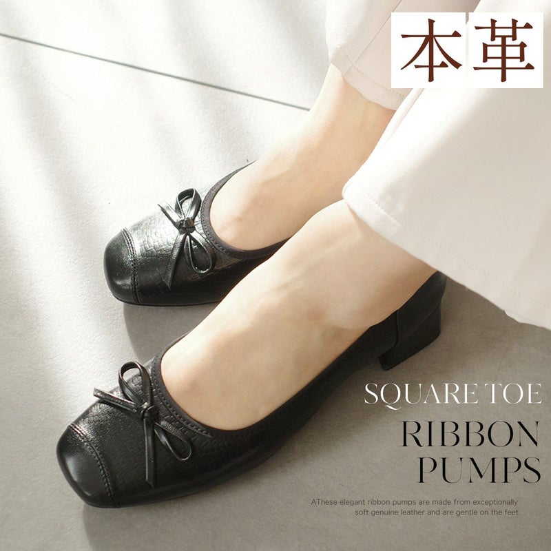 リボンパンプススクエアトゥパンプス レディース