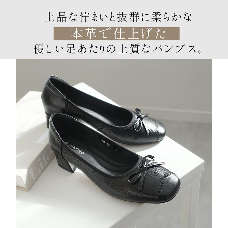 3cmの太めヒールは程よい高さを保ちスタイルアップでき、安定感もありながら足を綺麗に見せてくれます。クッション性のあるインソールとアーチサポートを内蔵し快適な履き心地。
