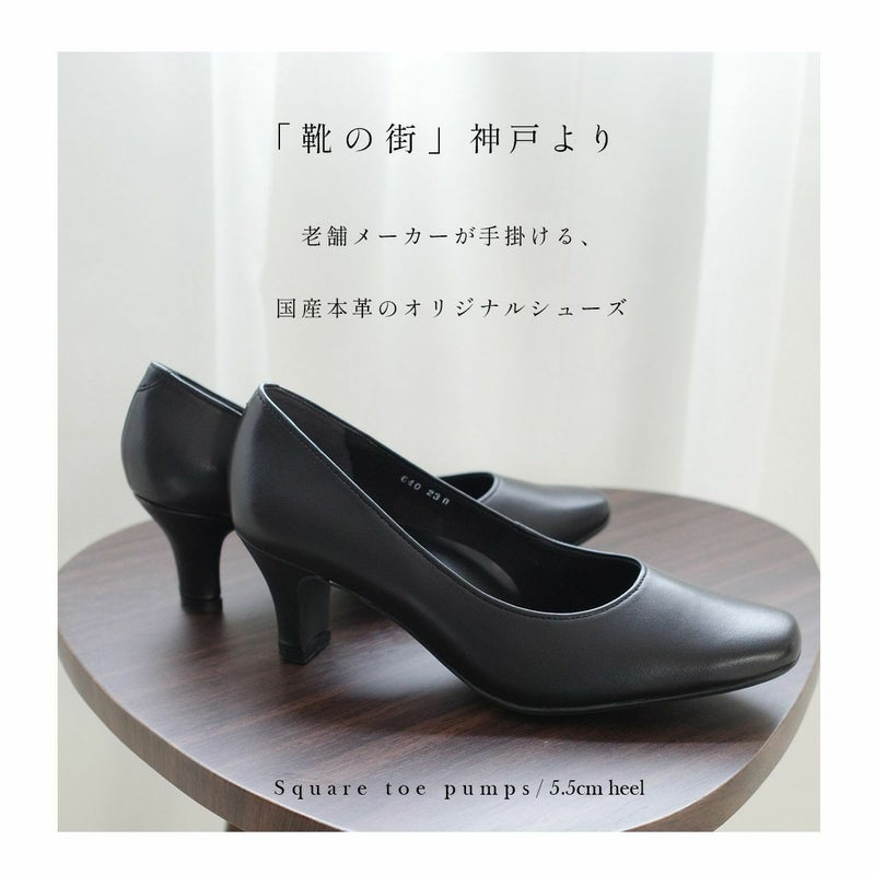 【在庫限り!特別価格!】スクエアトゥパンプス日本製本革 レディース