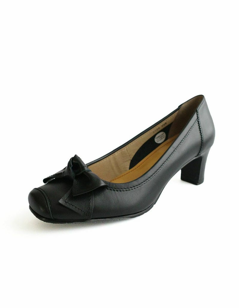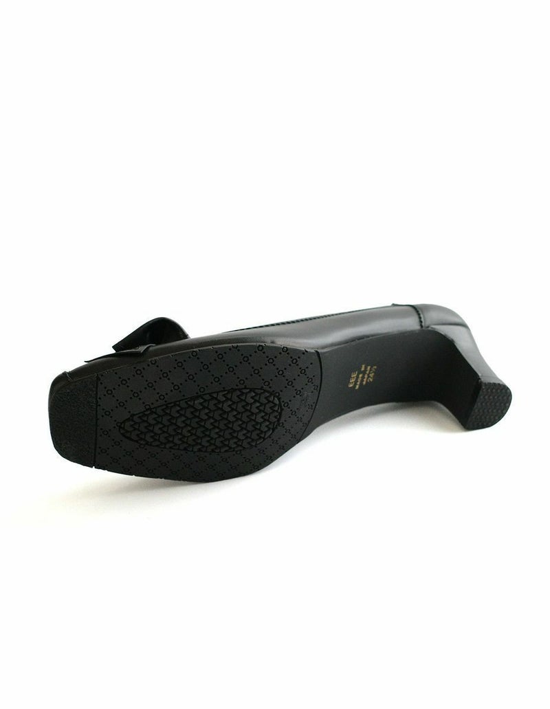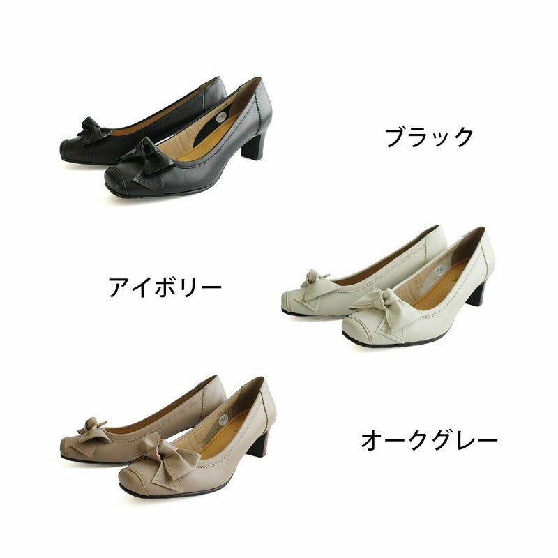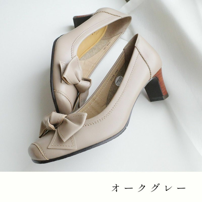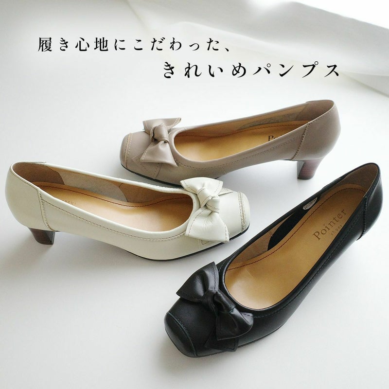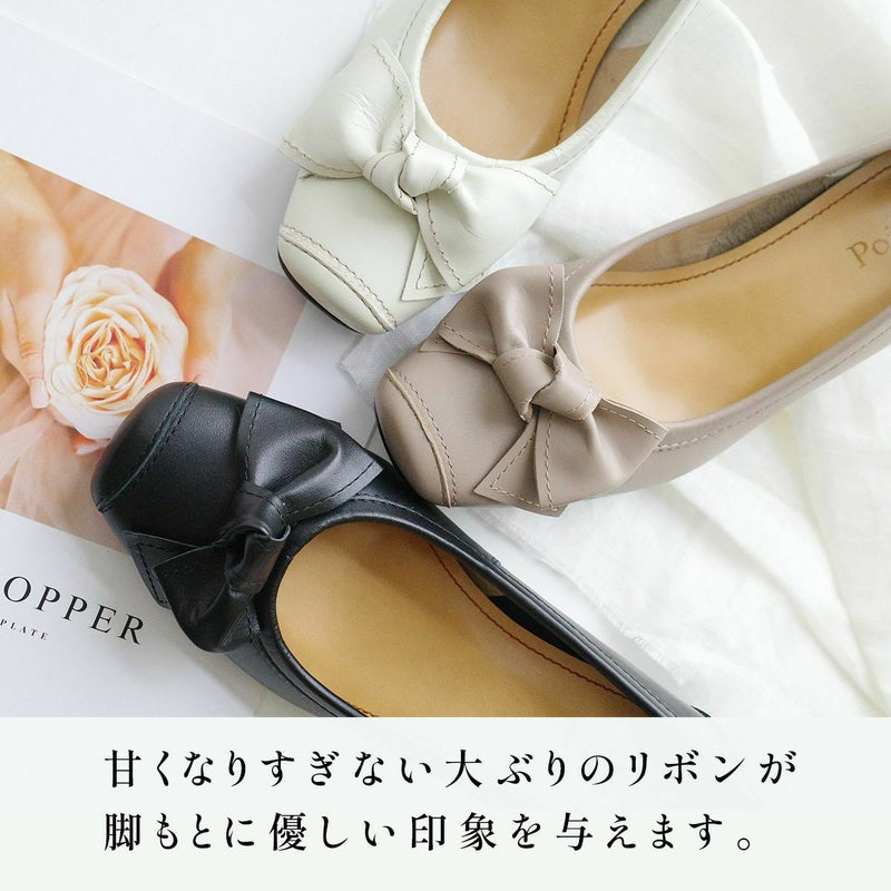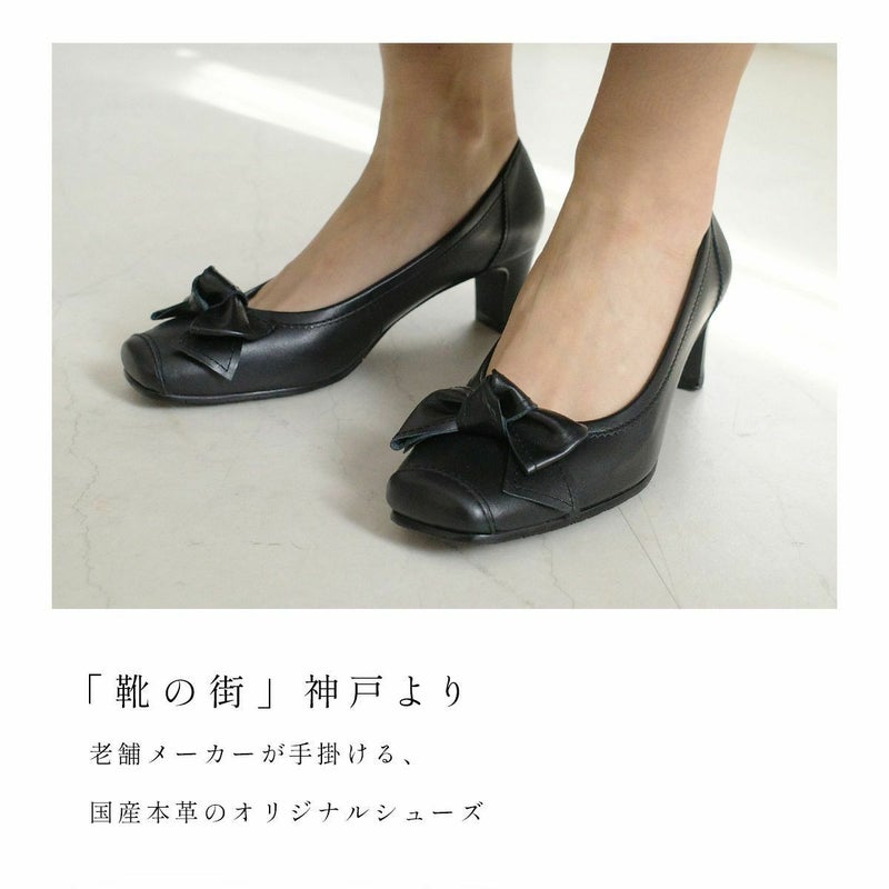 本革リボン付きパンプス レディース