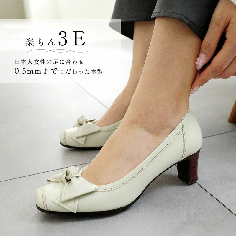 中敷は抗菌消臭・低反発クッションで長時間歩いても安心!甘くなりすぎない大ぶりのリボンが脚もとに優しい印象をあたえます。