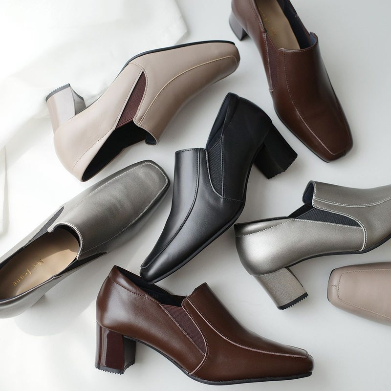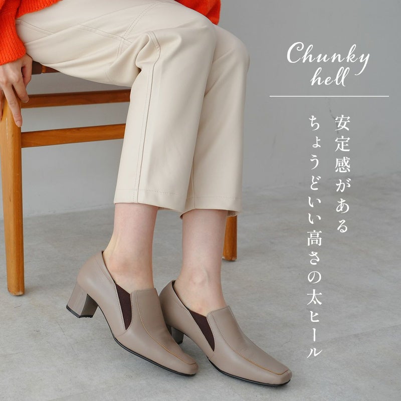 チャンキーヒール×甲深パンプスで脱ぎ履きしやすく歩きやすい!