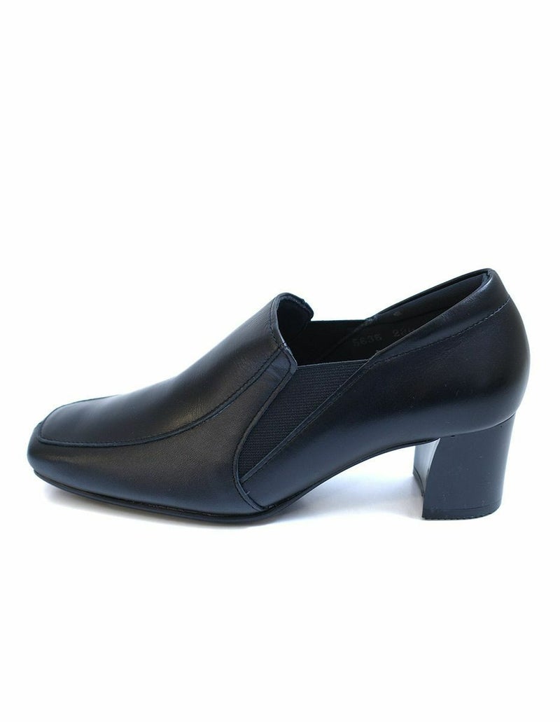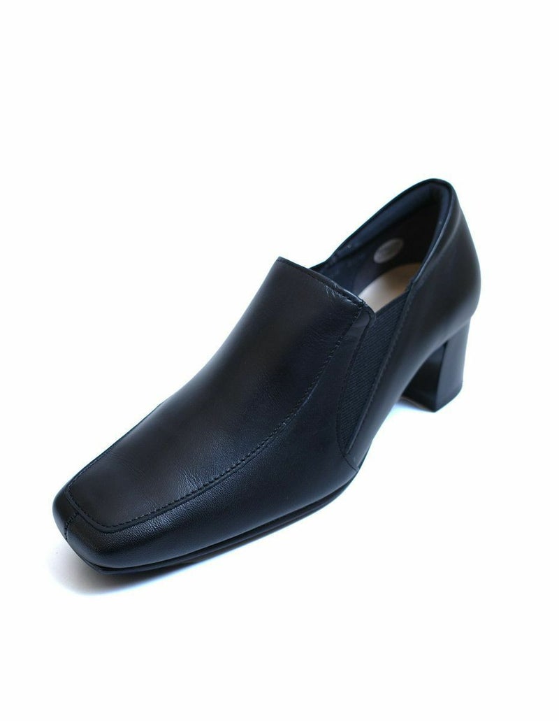 本革チャンキーヒールパンプス レディース