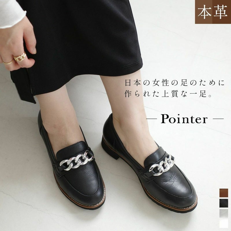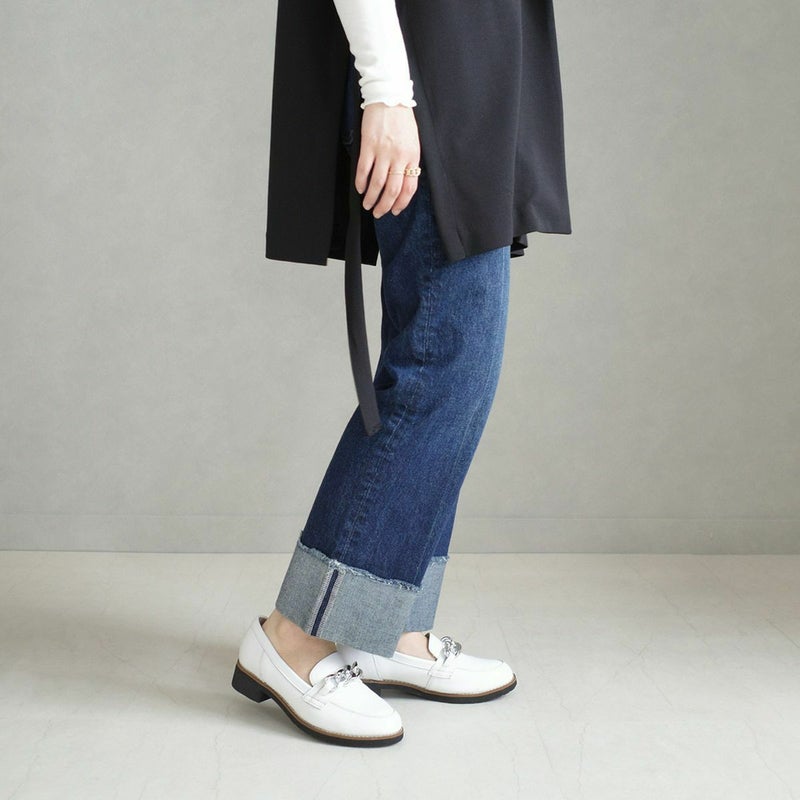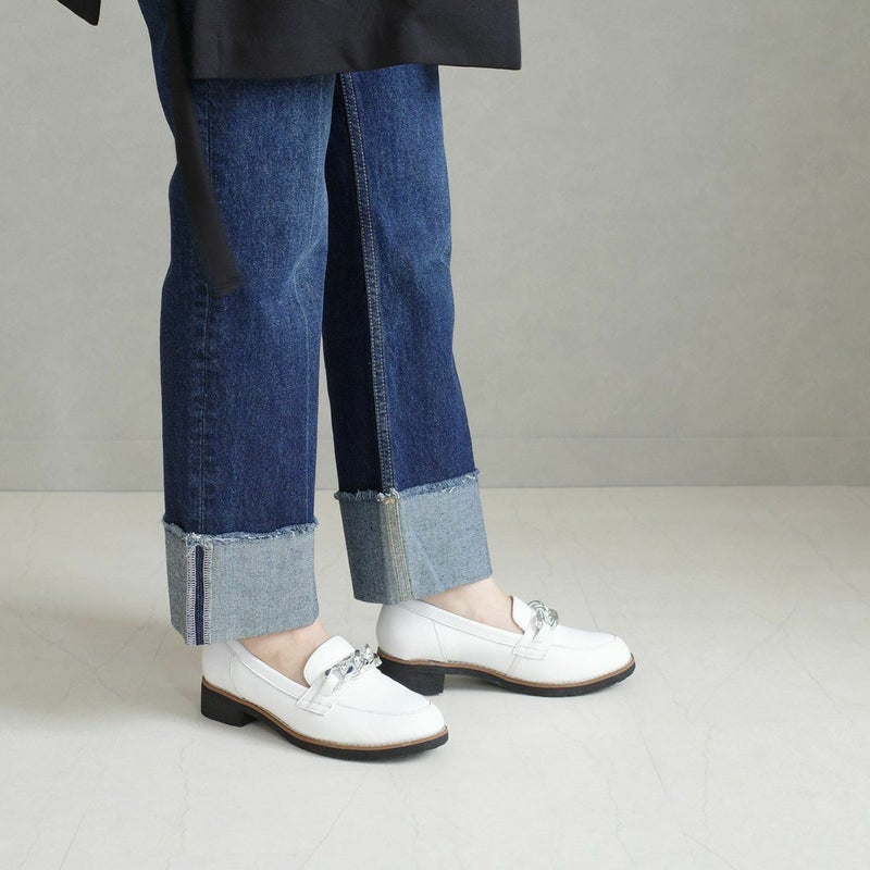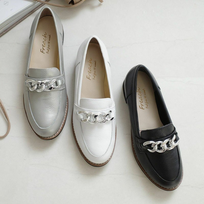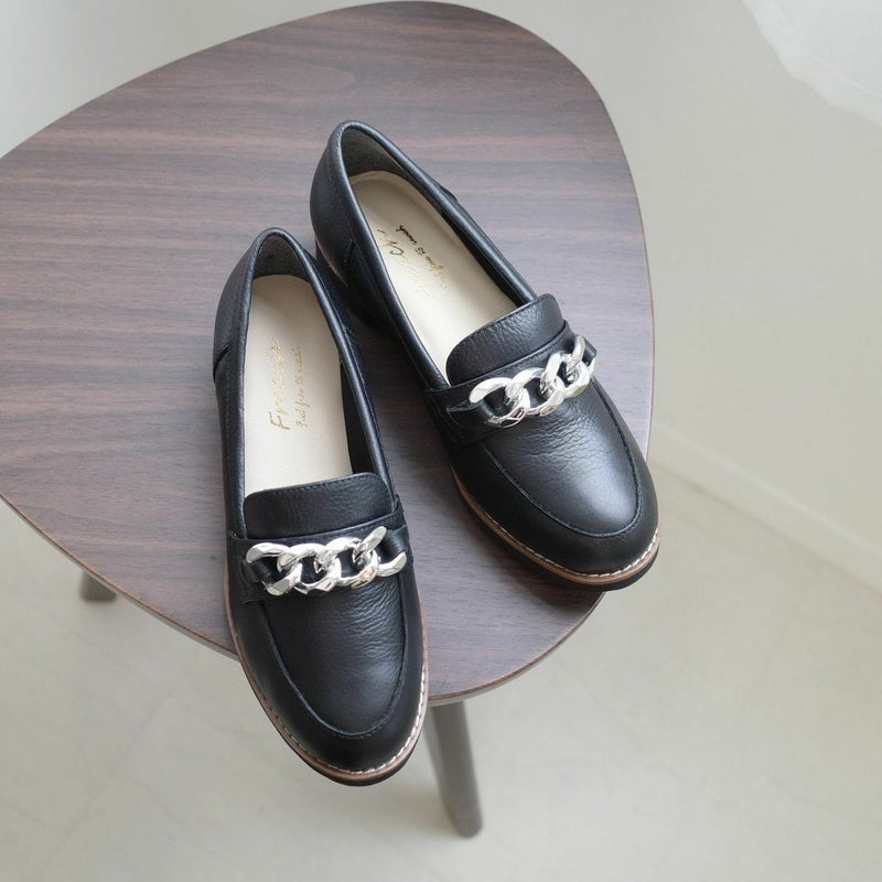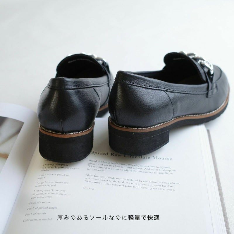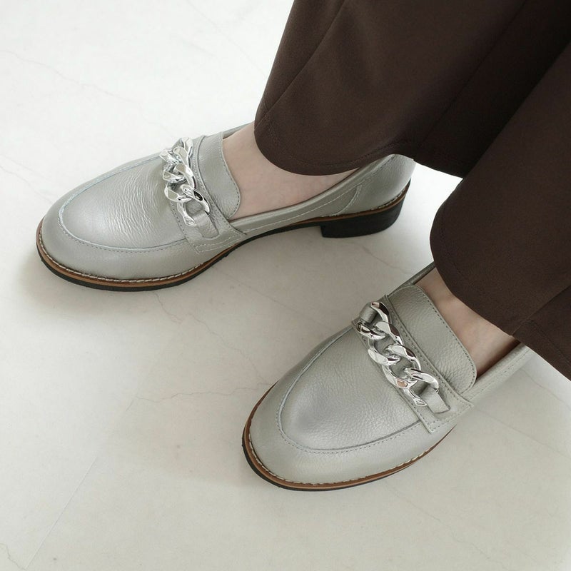 チェーンモチーフがポイントの大人の本革ローファー。