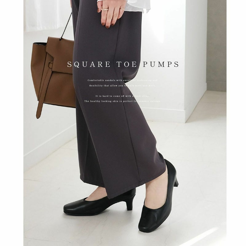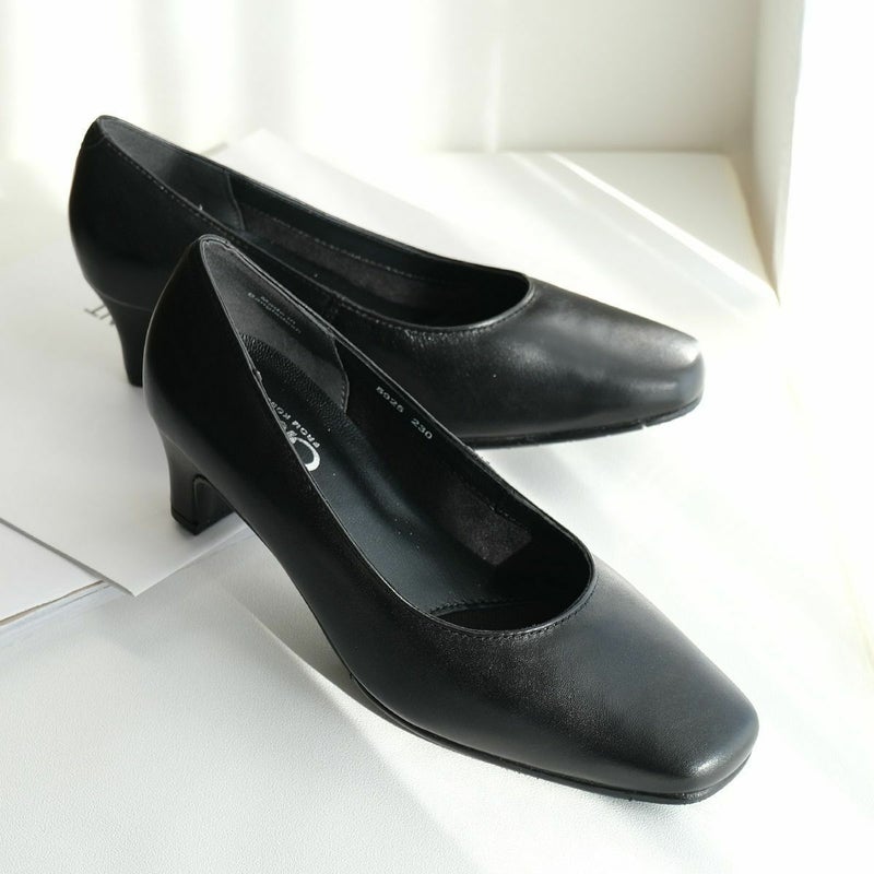 【期間限定SALE】スクエアトゥパンプス本革 レディース