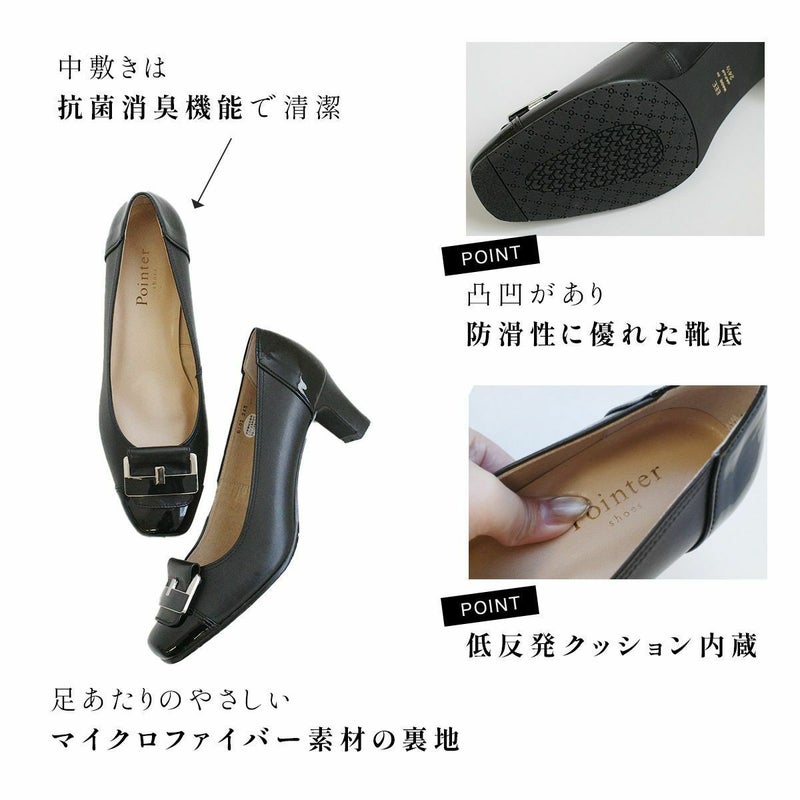 抗菌消臭・低反発クッションで機能性も抜群◎日本の職人の技術が詰まった本革スクエアトゥパンプス。