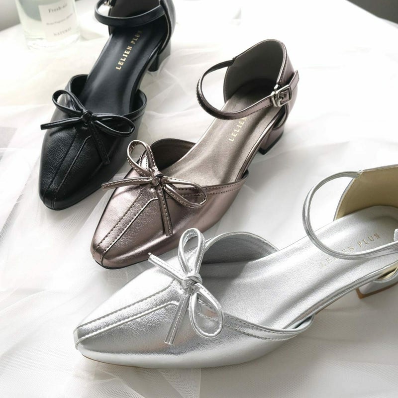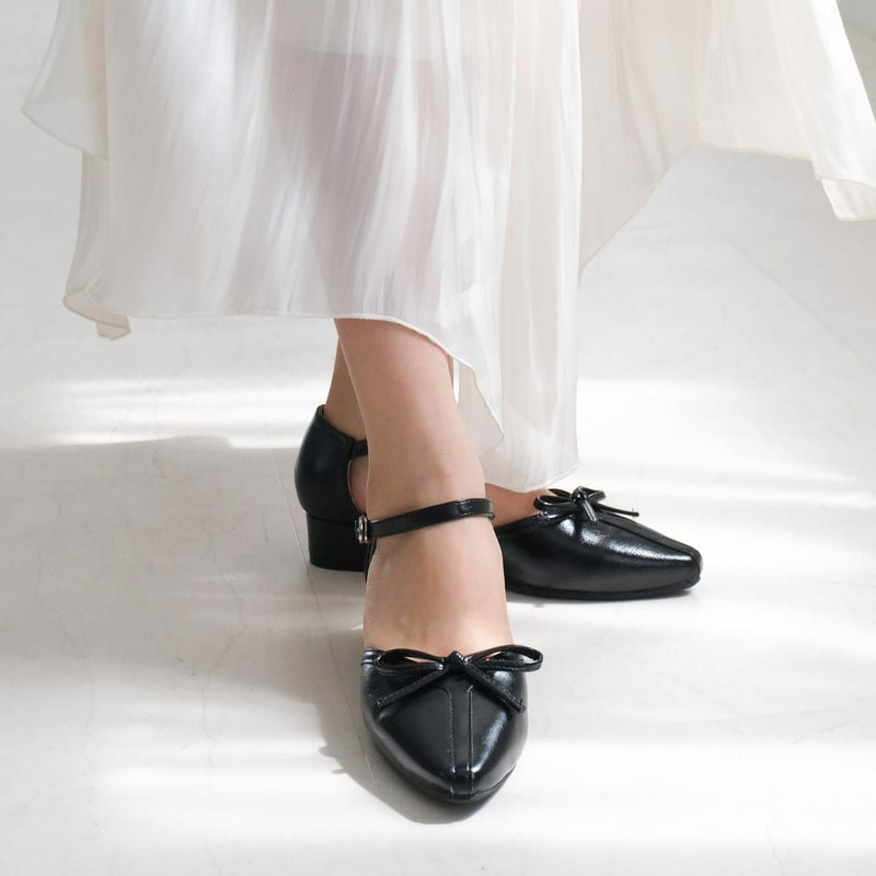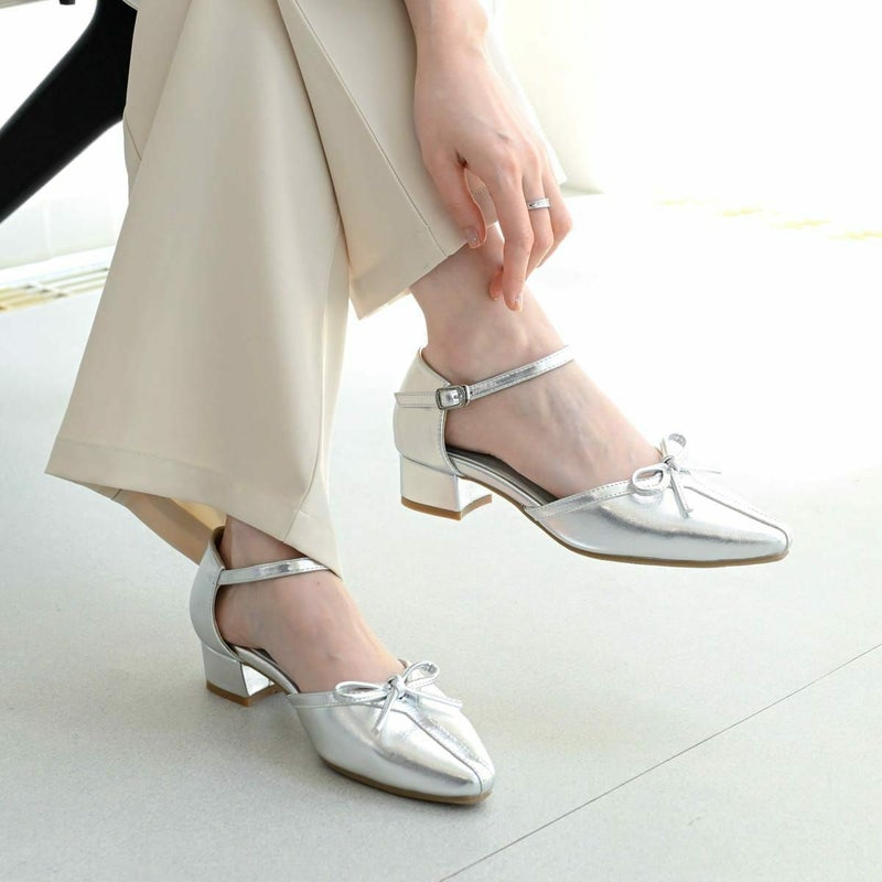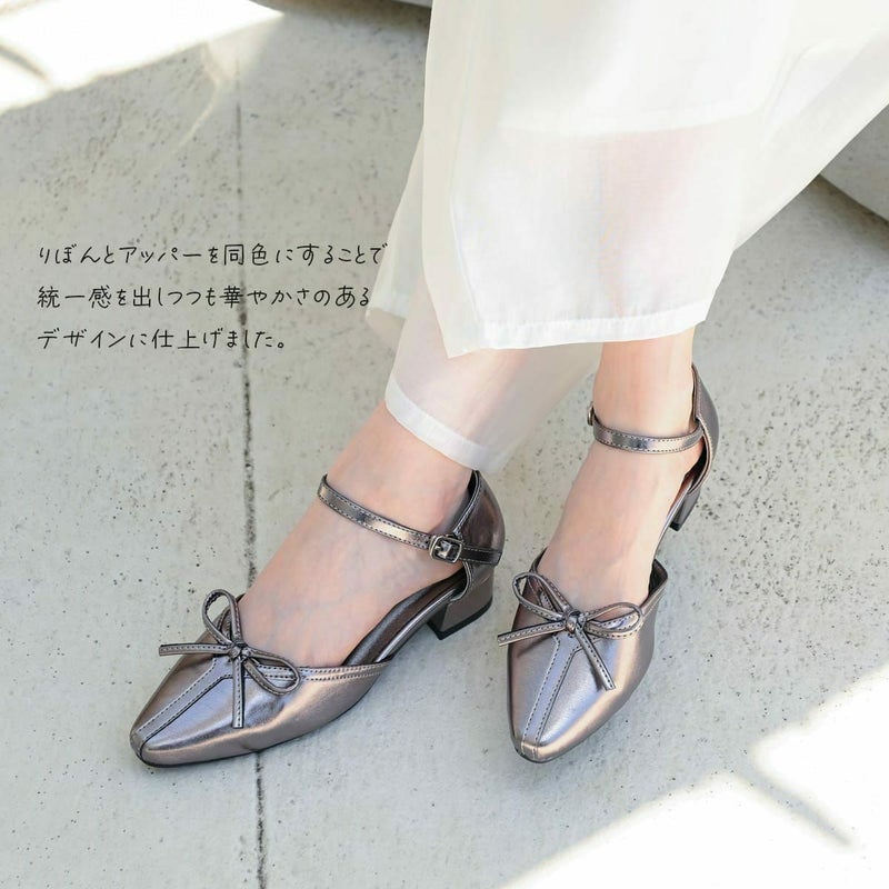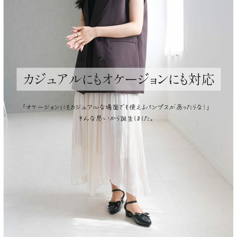 オケージョンにもカジュアルにも使えるリボン付きセパレートパンプス