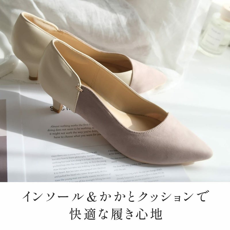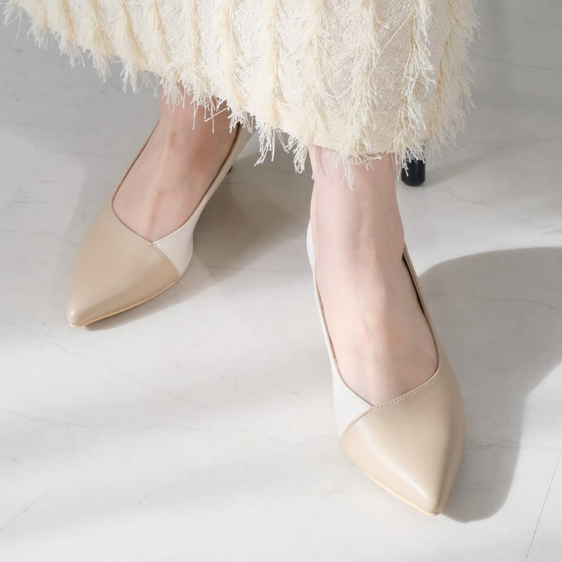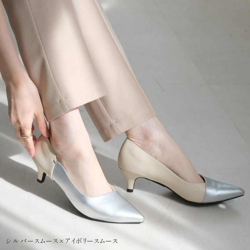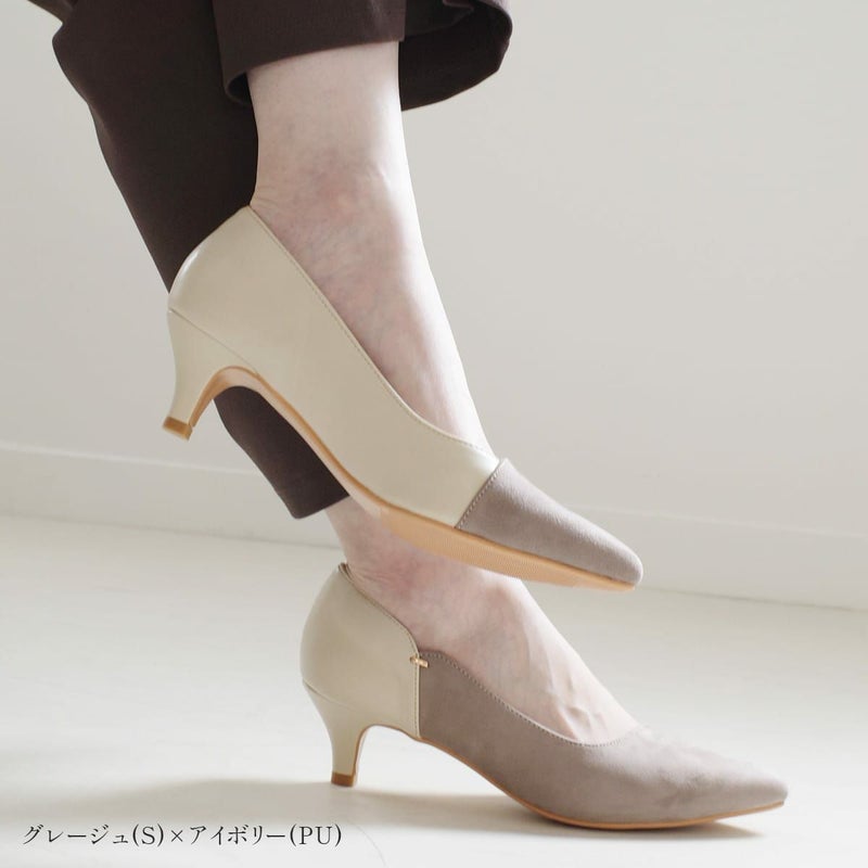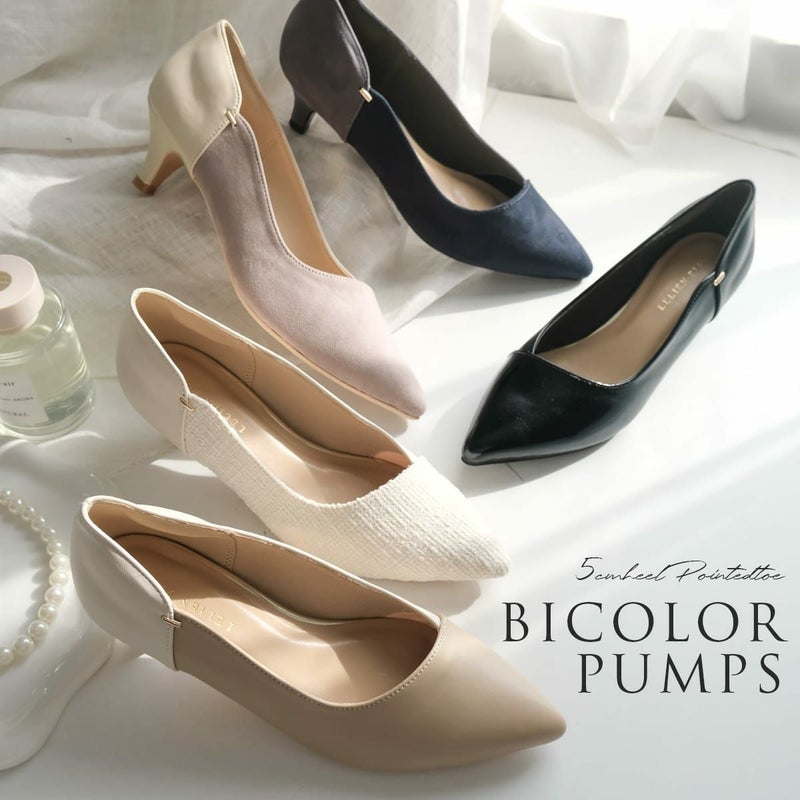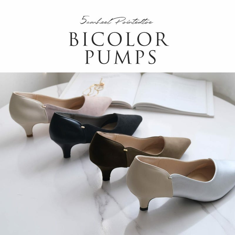 ポインテッドトゥバイカラーパンプスレディース靴 レディース