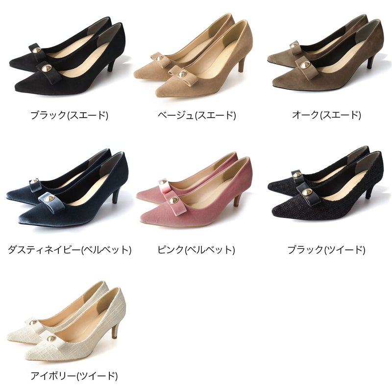 【期間限定SALE】リボンモチーフ付きポインテッドトゥパンプス レディース