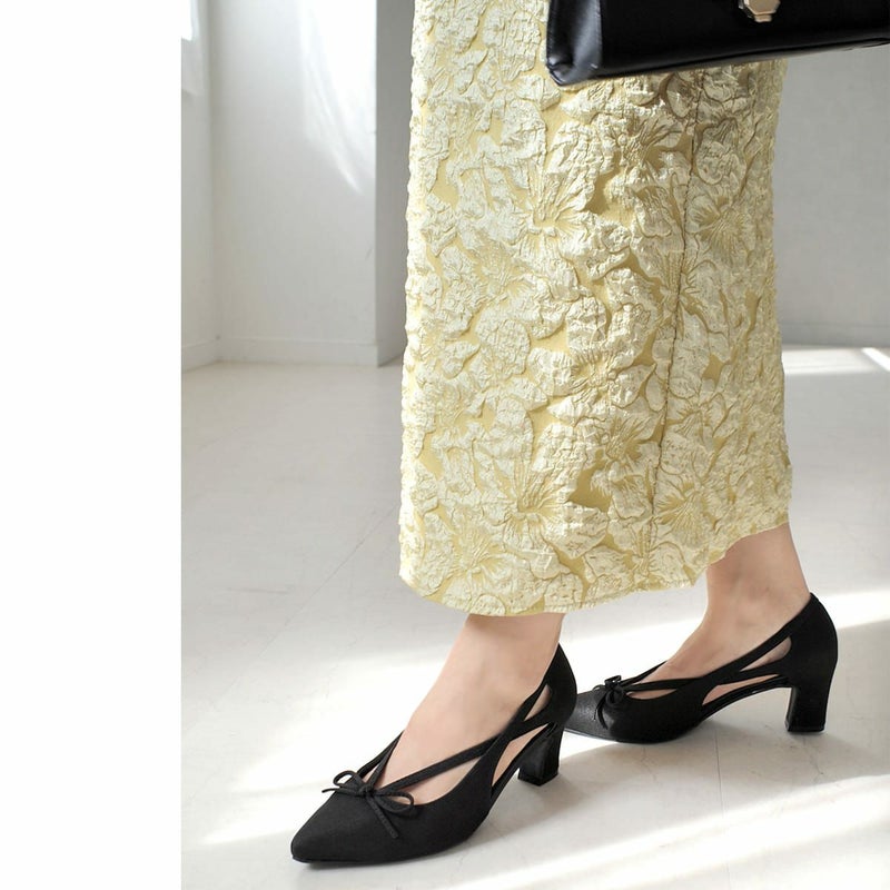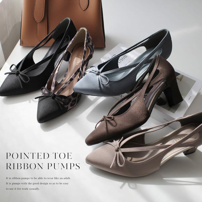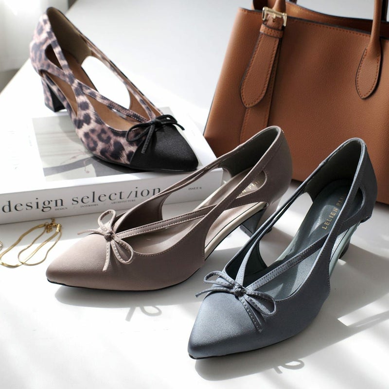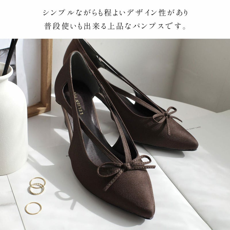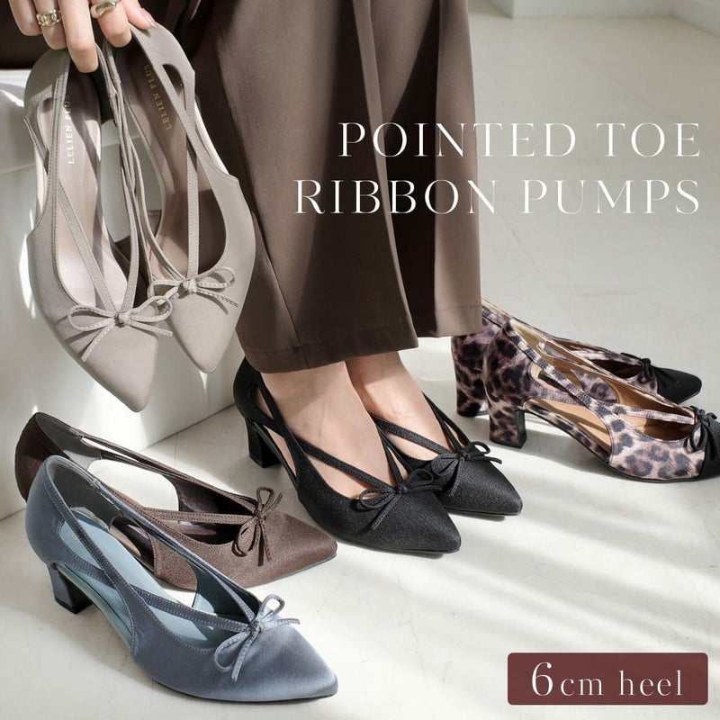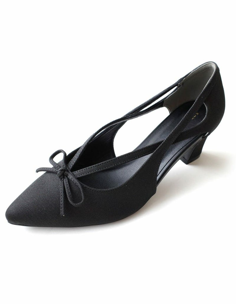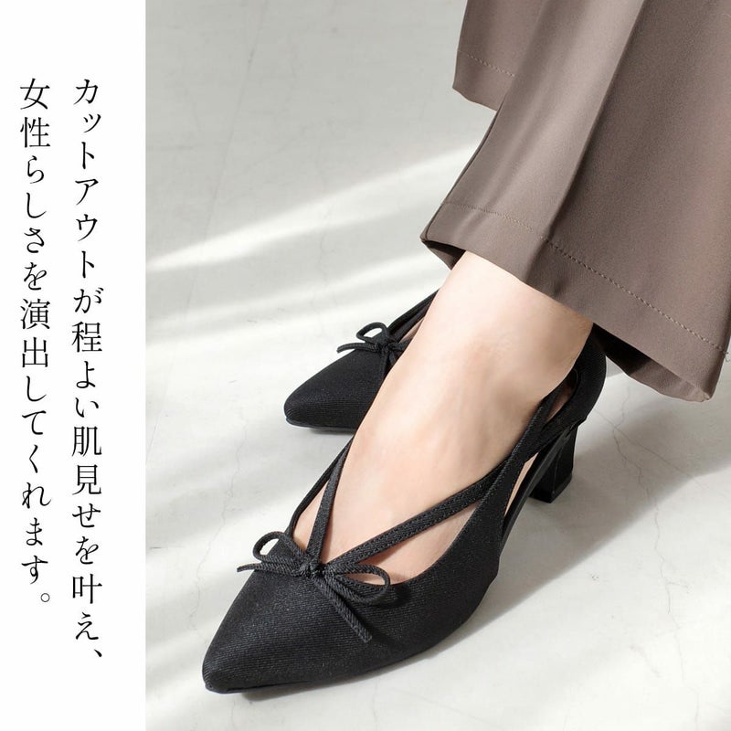 リボンカットアウトポインテッドトゥパンプス レディース