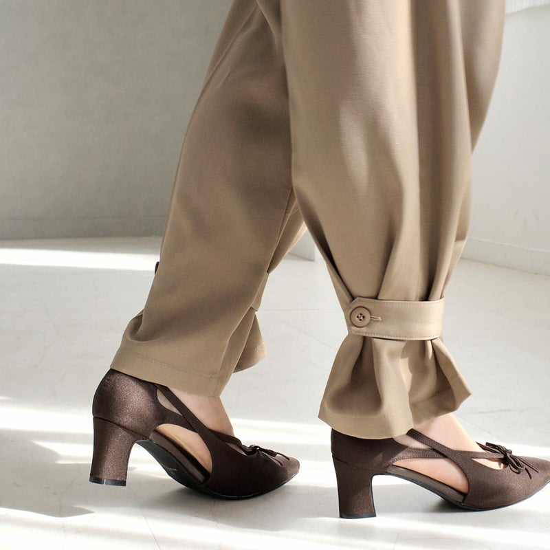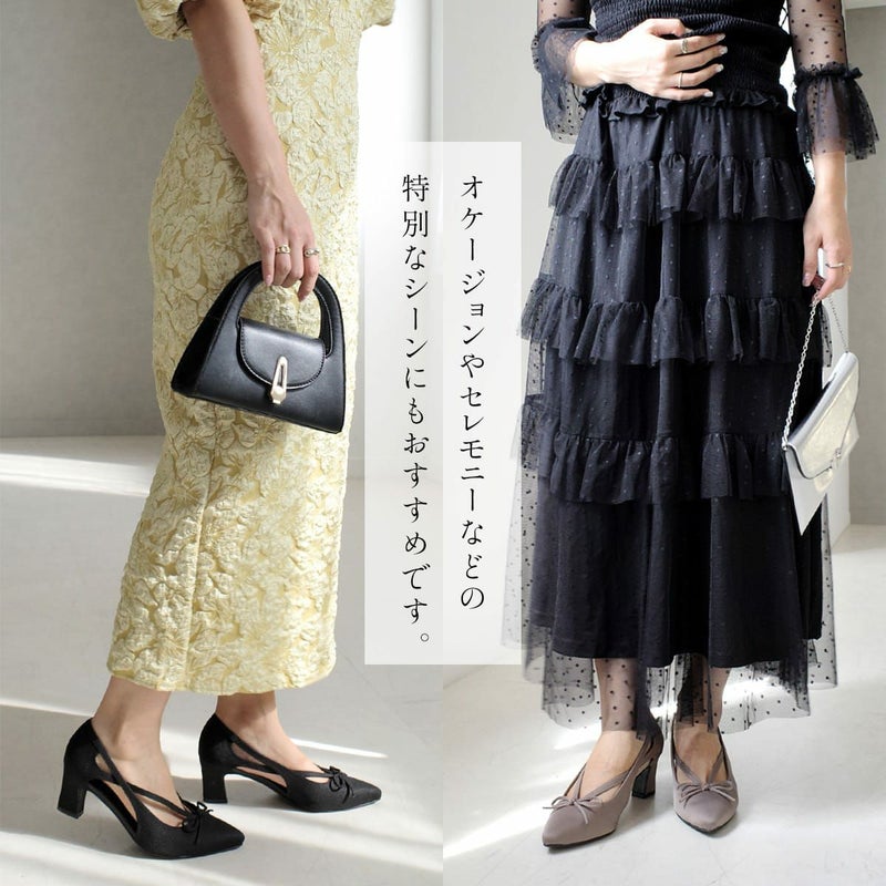 甘すぎないリボンや程よい肌見せを叶えるカットアウトが、足元に大人の抜け感を演出してくれます。6cm太めヒールで安定感があり、見た目以上に快適な履き心地。