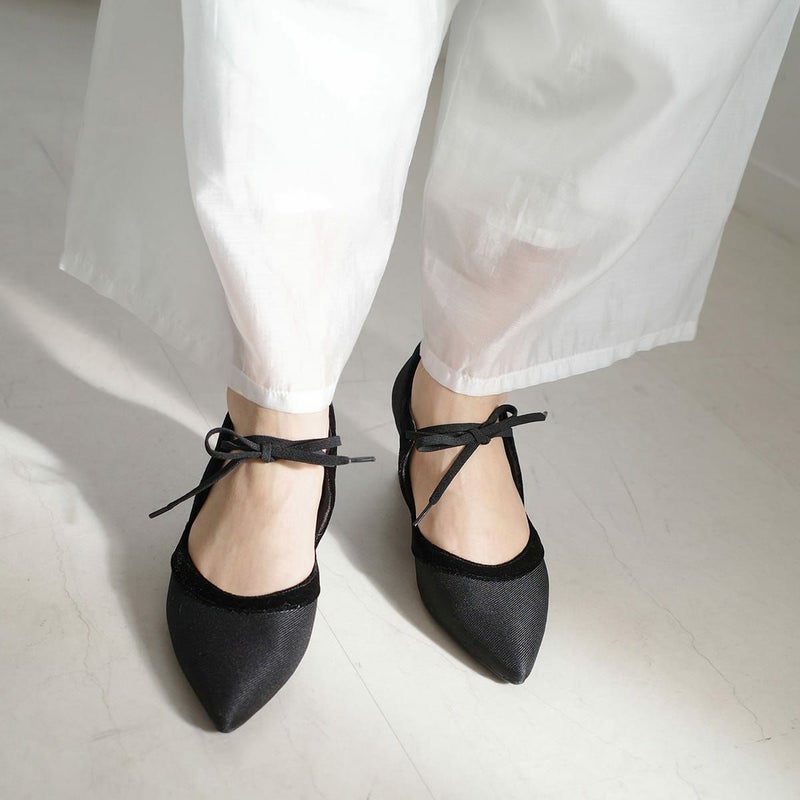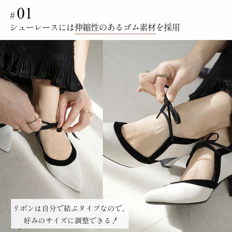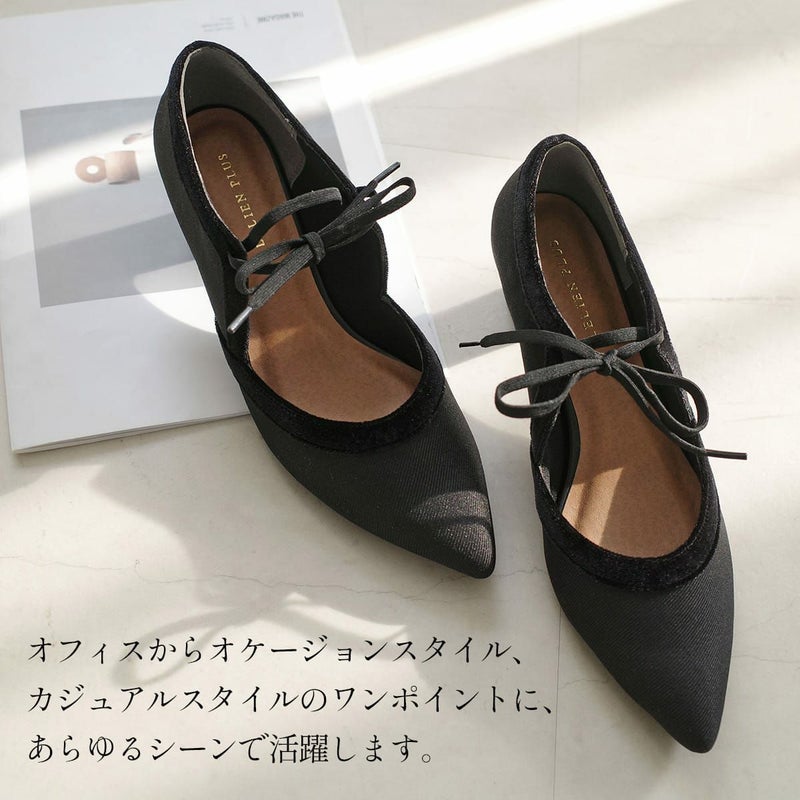 さりげないリボンで甘さを抑えた上品なリボンパンプス