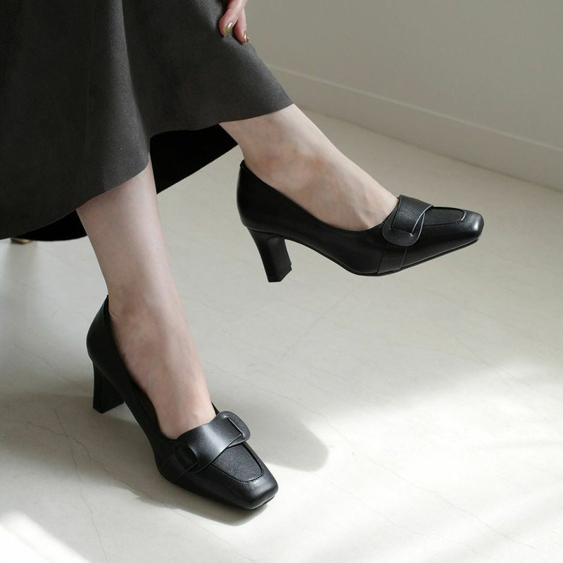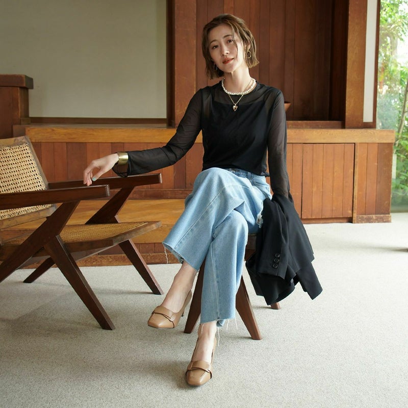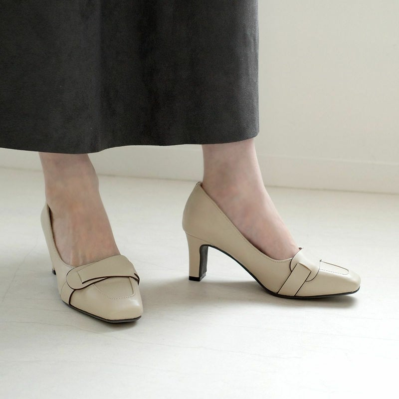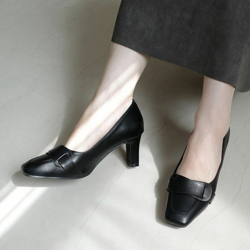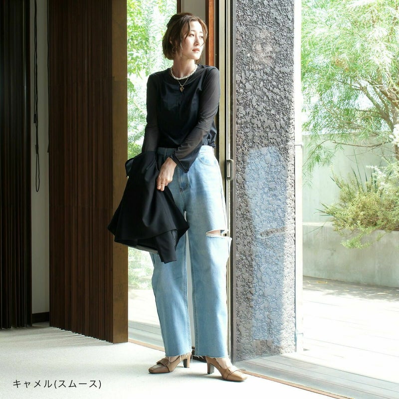 オンにもオフにも使いやすいデザイン。接地面が広く安定感があるプレートヒール&低反発インソールで快適な履き心地。