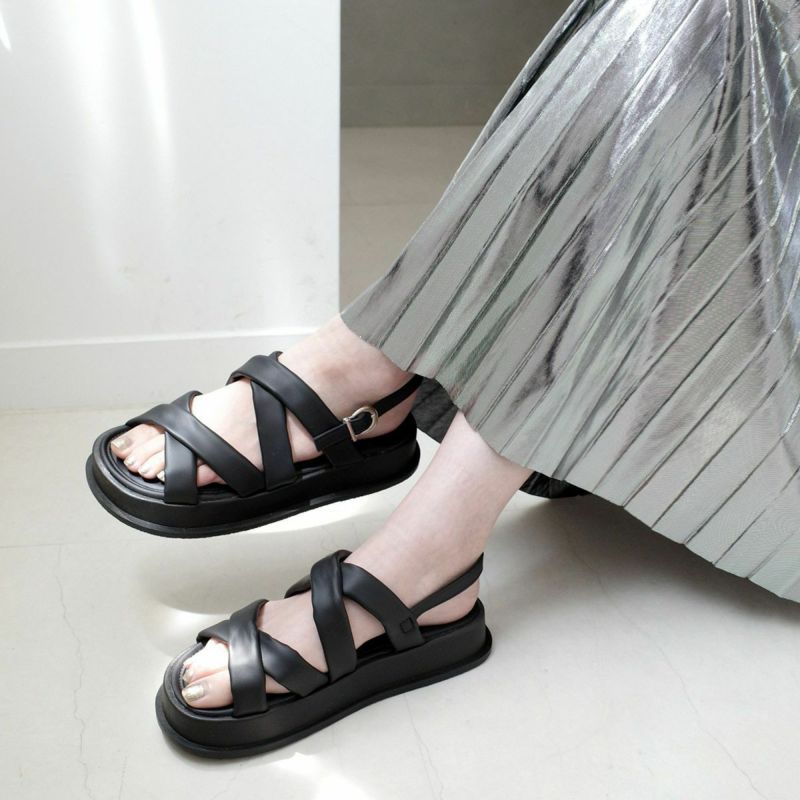 ふかふかなインソールとやわらか素材のベルトで足当たりやわらかな抜群の履き心地。かかとストラップには内側にゴムが付いているので脱ぎ履きしやすく、程よい厚底ソールで歩きやすく安定感バッチリ。
