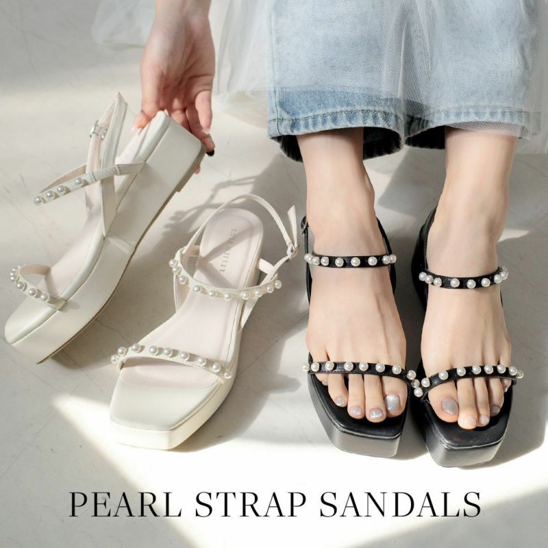【在庫限り!特別価格!】厚底パールストラップサンダル レディース