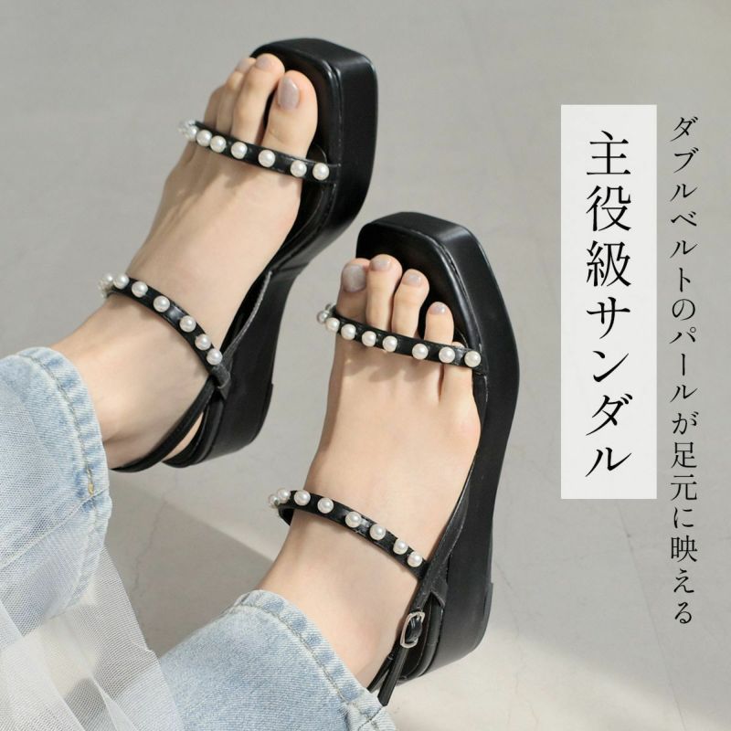 ダブルベルトのパールが足元に存在感をもたらす主役級サンダル
