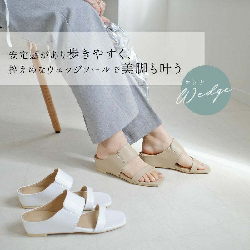 今っぽくきれいめに履けるスクエアトゥ&様々なコーデに合わせやすいワンカラーになって登場です。4.5cmの控えめなウェッジソールで美脚かつ、安定感もあるので歩きやすさも叶えてくれます。