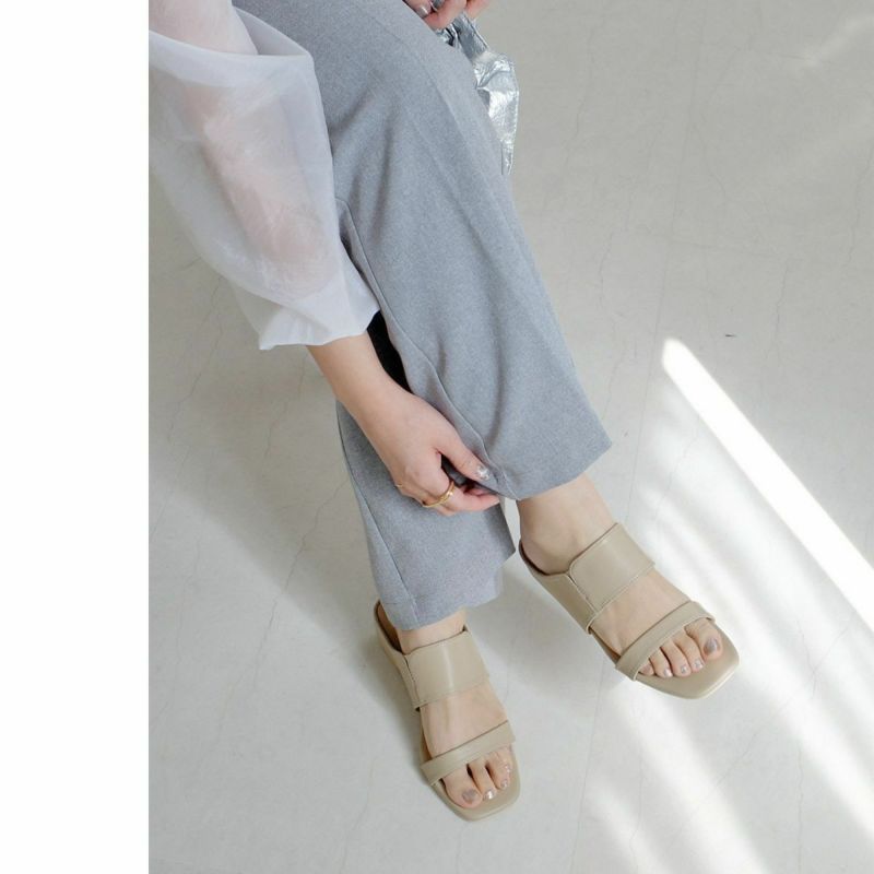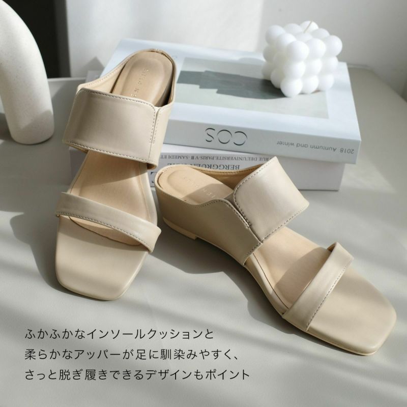 スクエアトゥウェッジソールミュールサンダルストラップ レディース