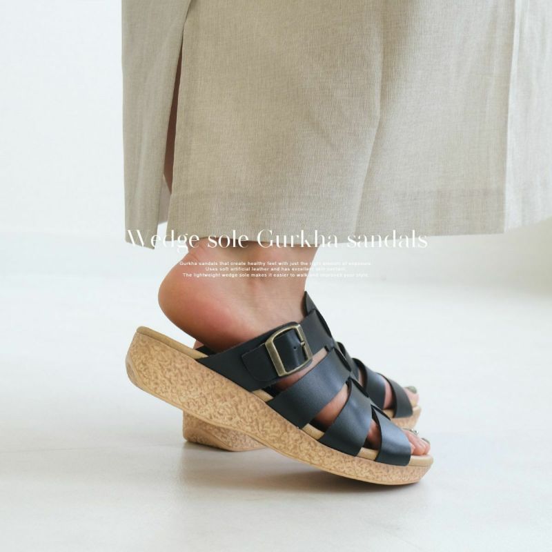 かかと部分をなくし、さっとラフに履けるグルカサンダル。