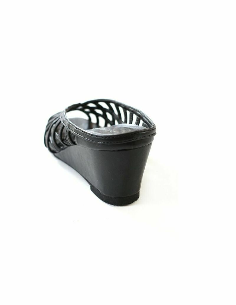 安定感のあるウエッジソールで歩きやすくで楽ちんな履き心地。ミュールサンダルタイプでさっと履けるのでノンストレス