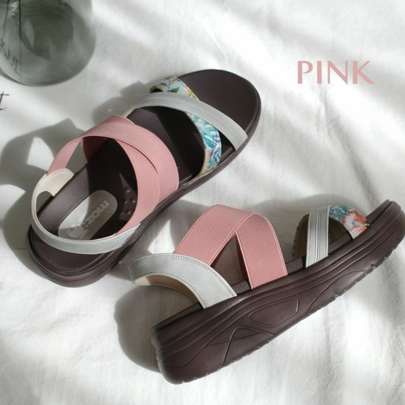 モズmozウエッジソールクロスゴムストラップサンダル厚底 レディース