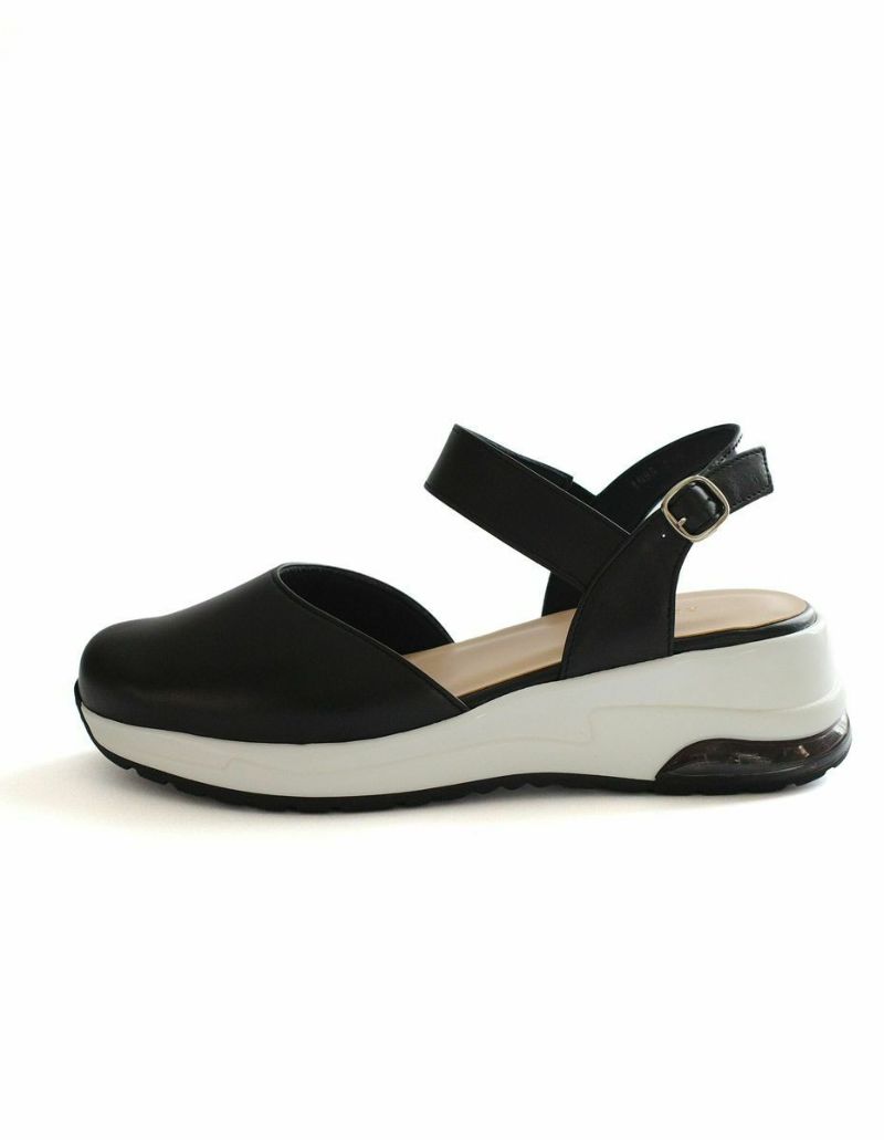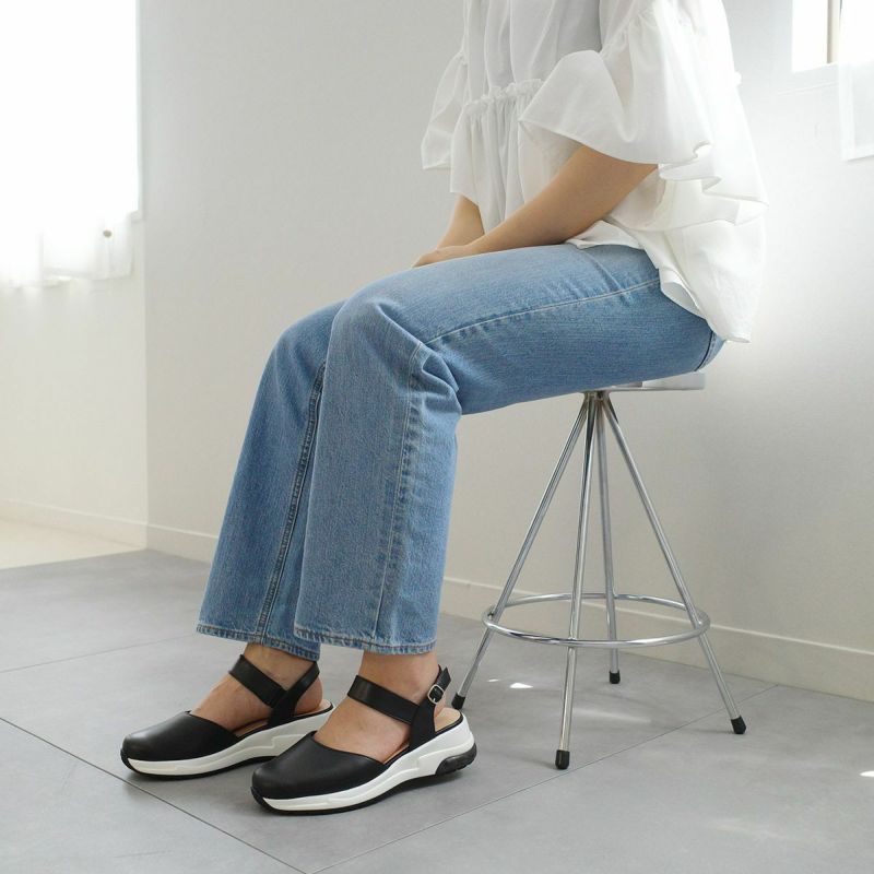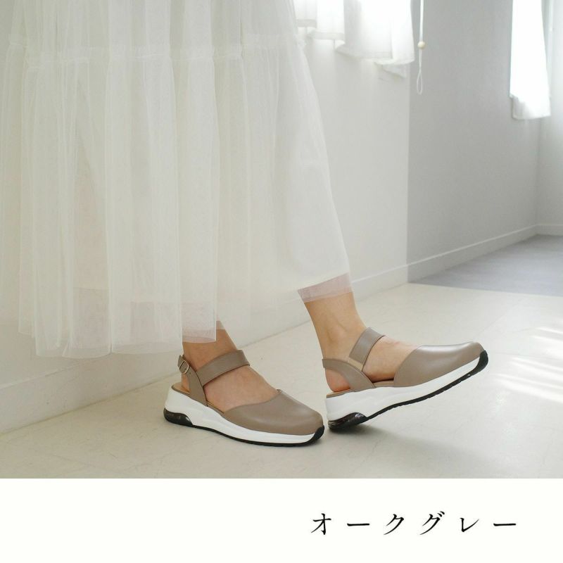気になるつま先は隠してキレイめに履けるデザインです。足首部分にホールド感があり、ゴム入りで脱ぎ履きもラクラク!バックストラップは3段階に調節可能。