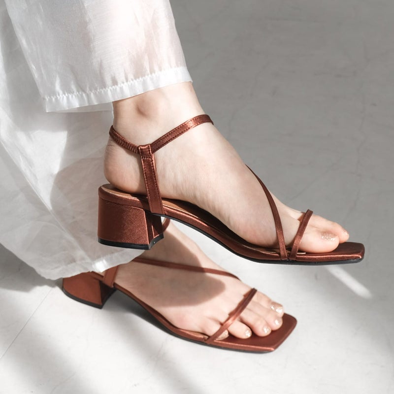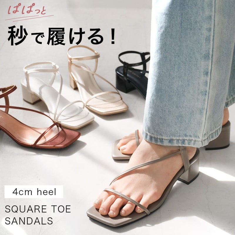 【期間限定SALE】スクエアトゥゴムストラップサンダル華奢 レディース