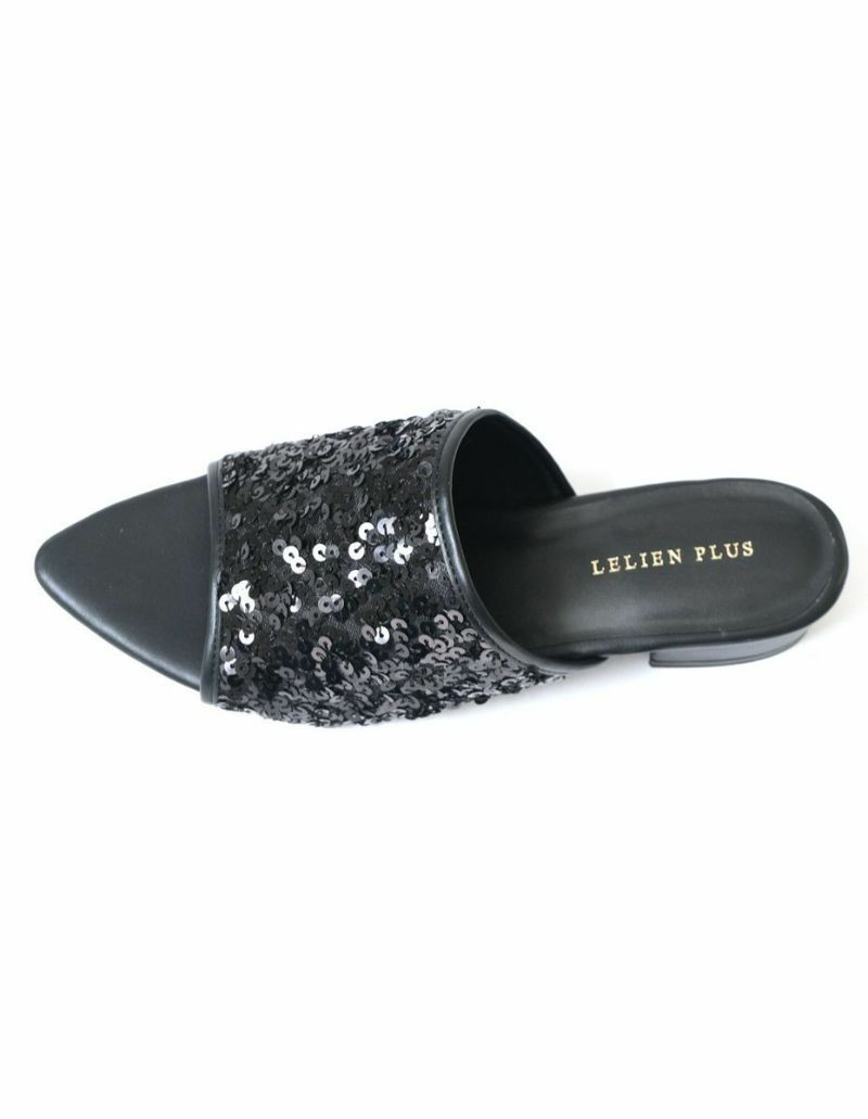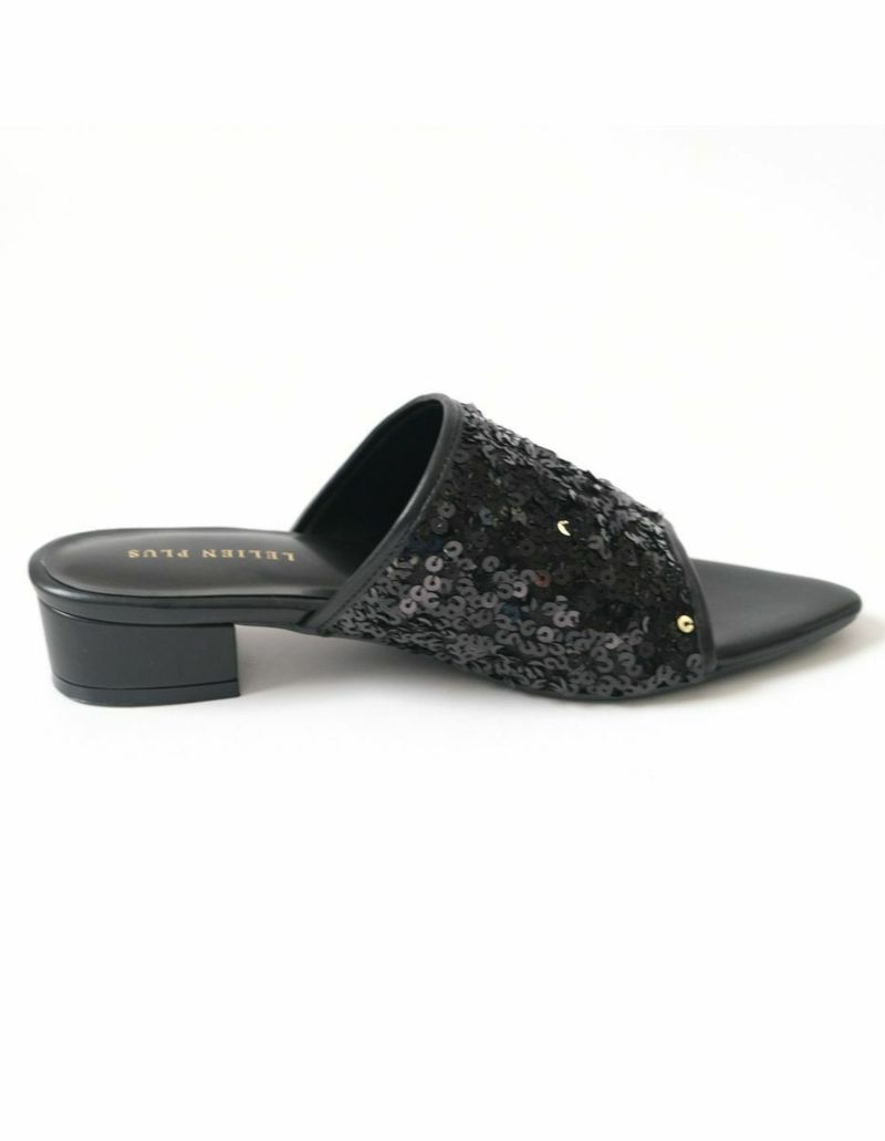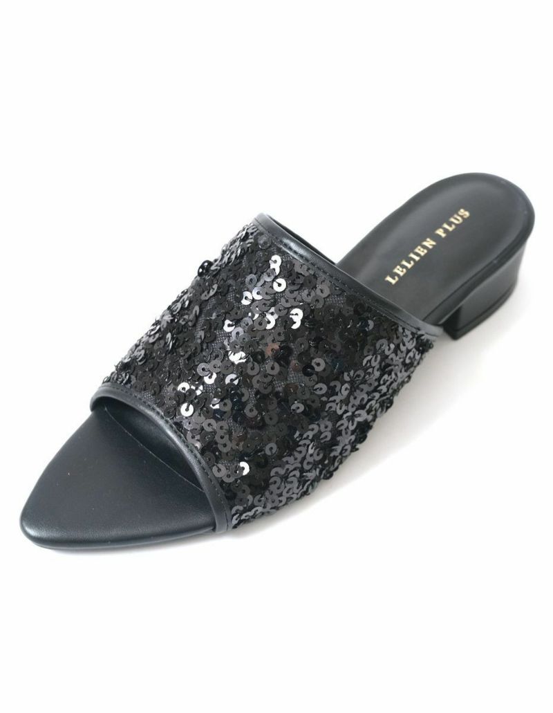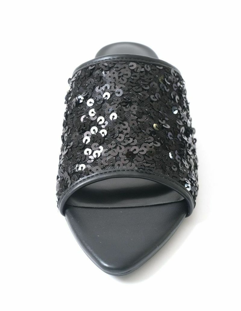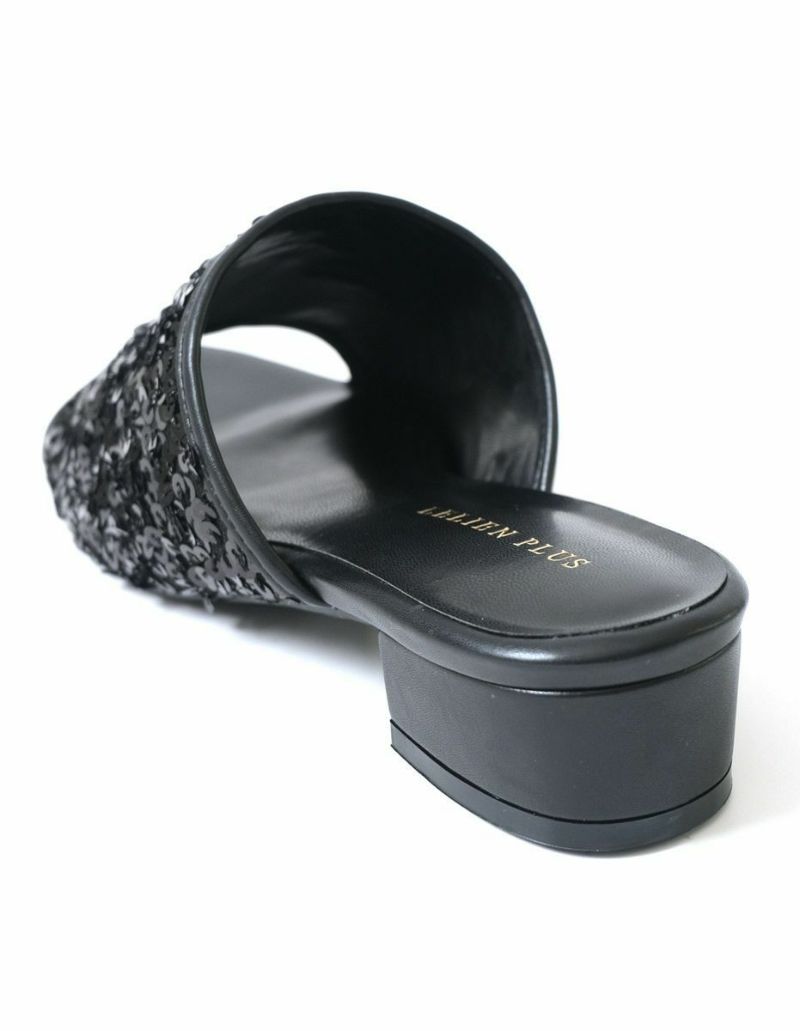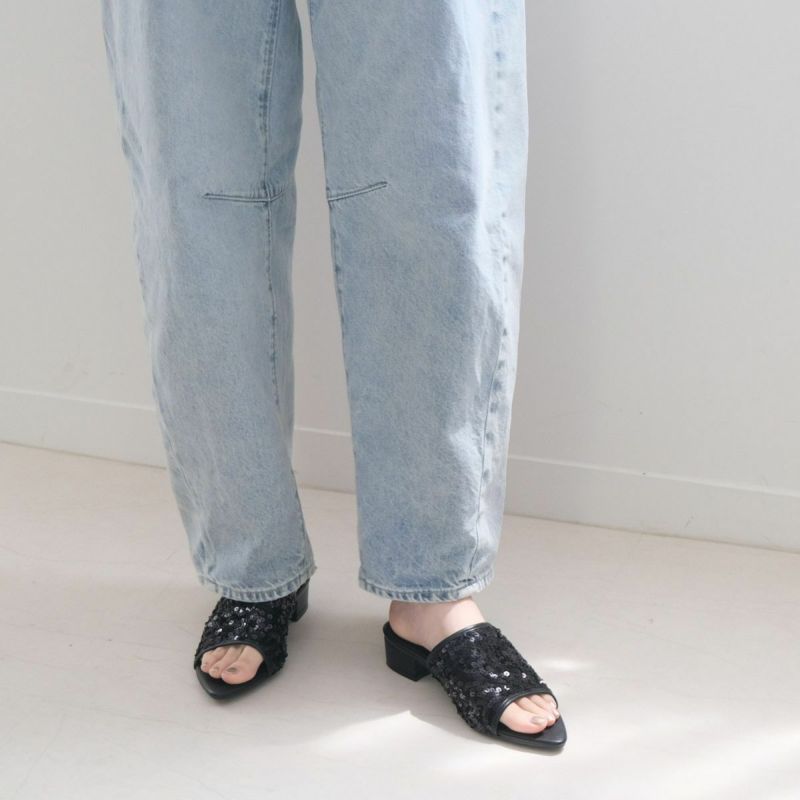 スパンコールを敷き詰めたキラキラと輝くミュールサンダル
