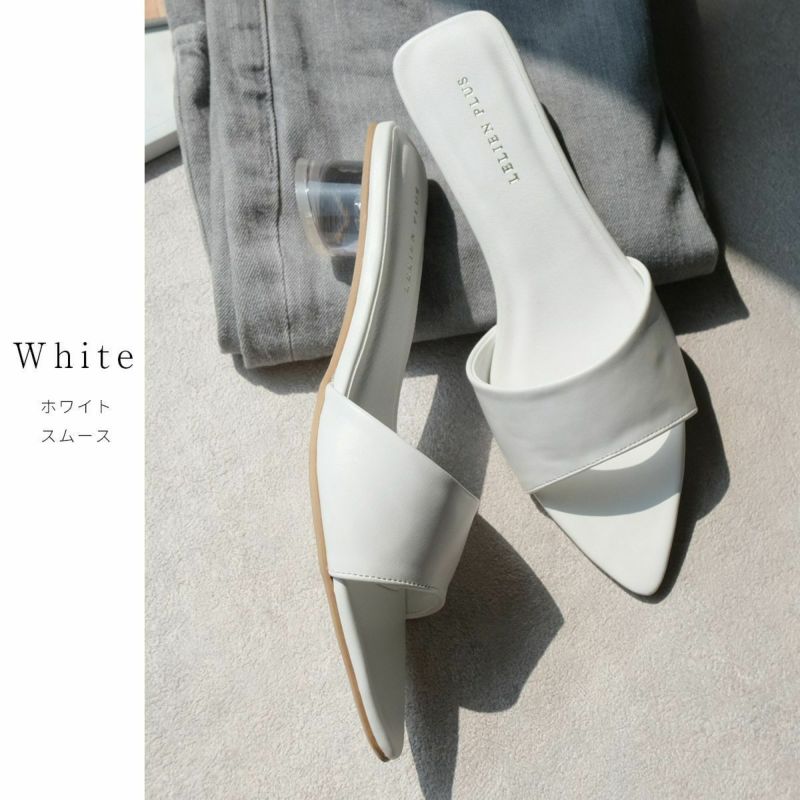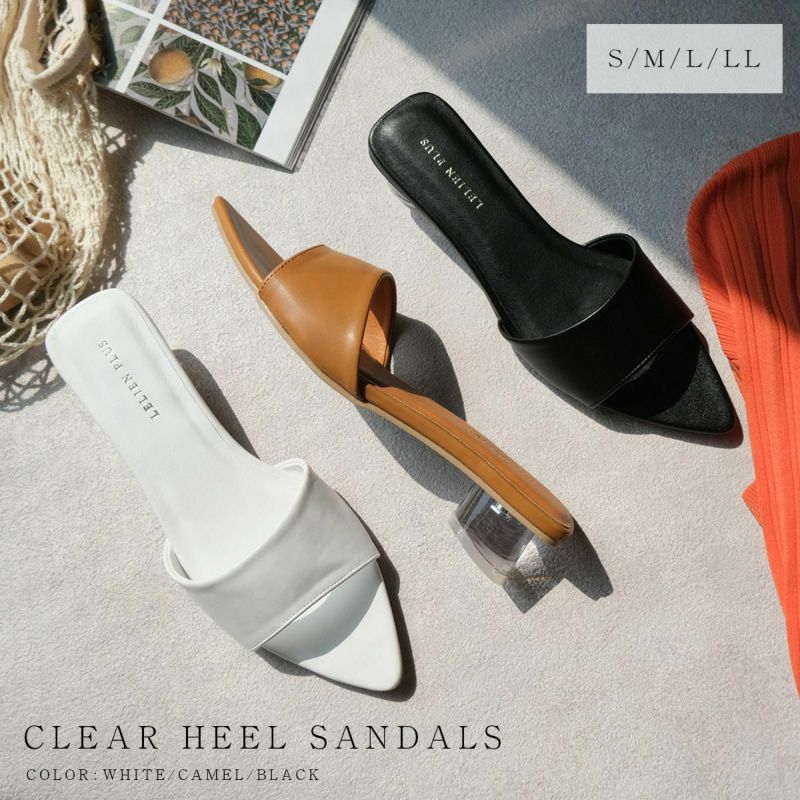 斜めのクリアヒールで季節感のある足元にミニマルなワンベルトデザインにクリアヒールで